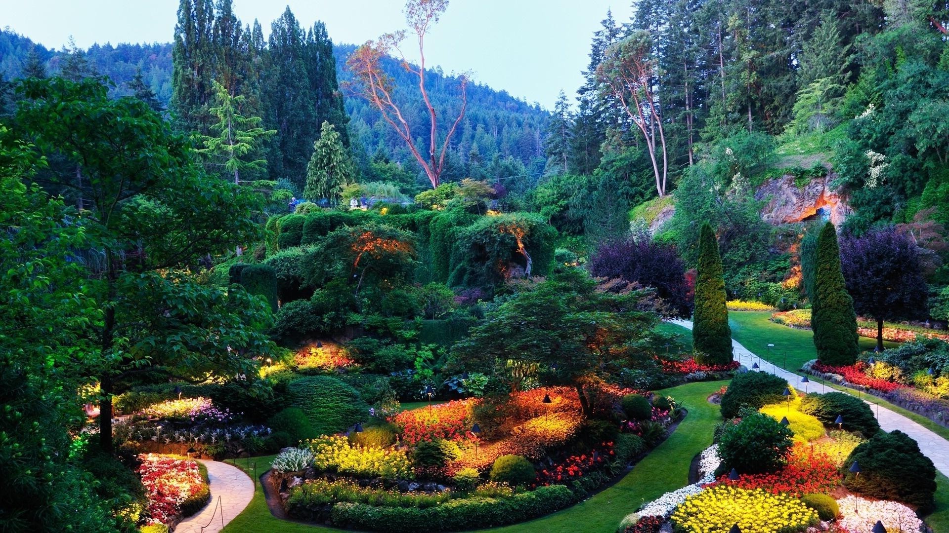 Schöne natur blühende blumenbeete