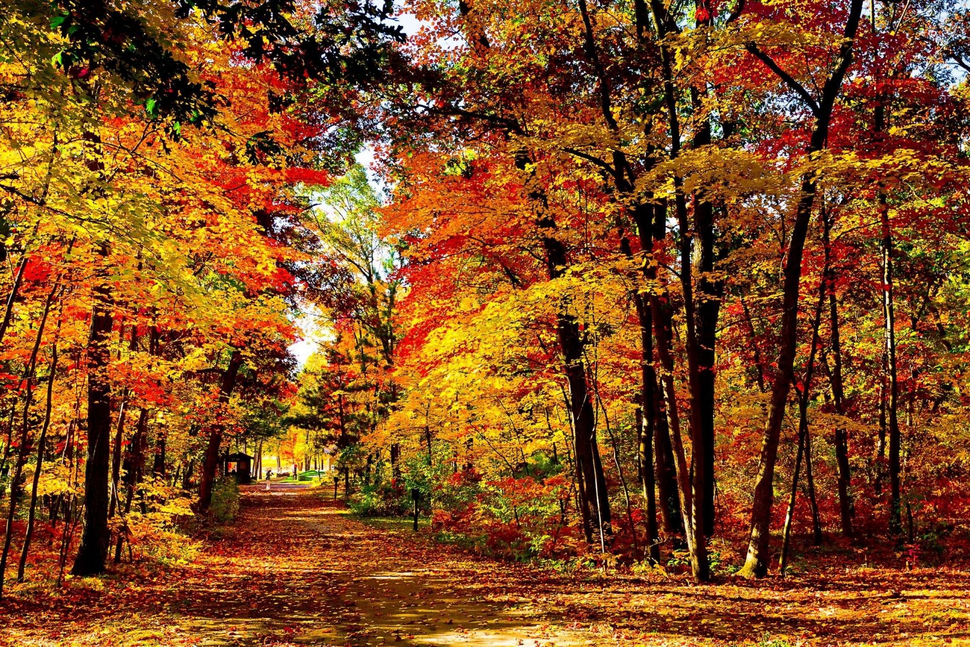 Waldweg in gelben Blättern