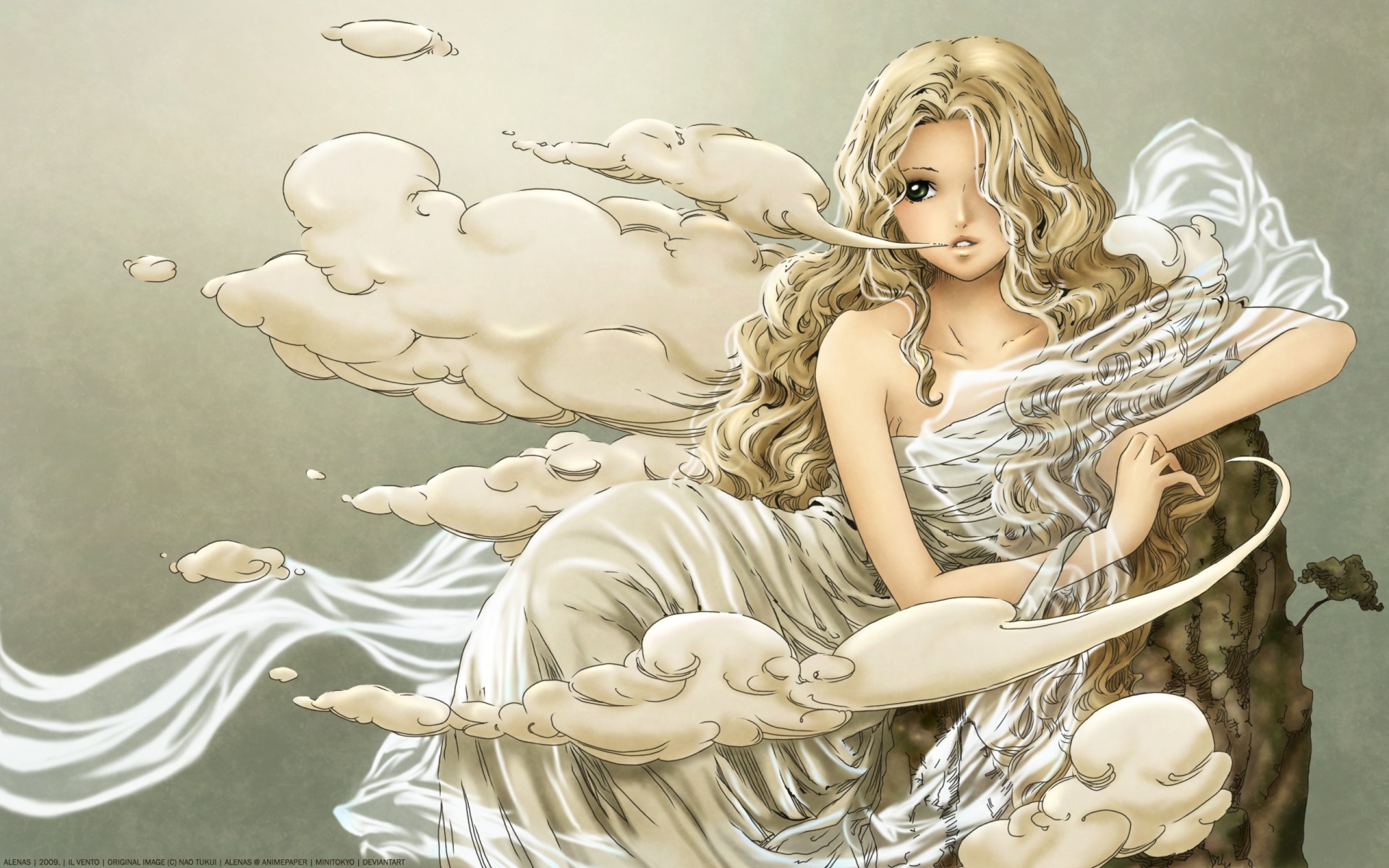 Nettes Mädchen unter himmlischen Wolken
