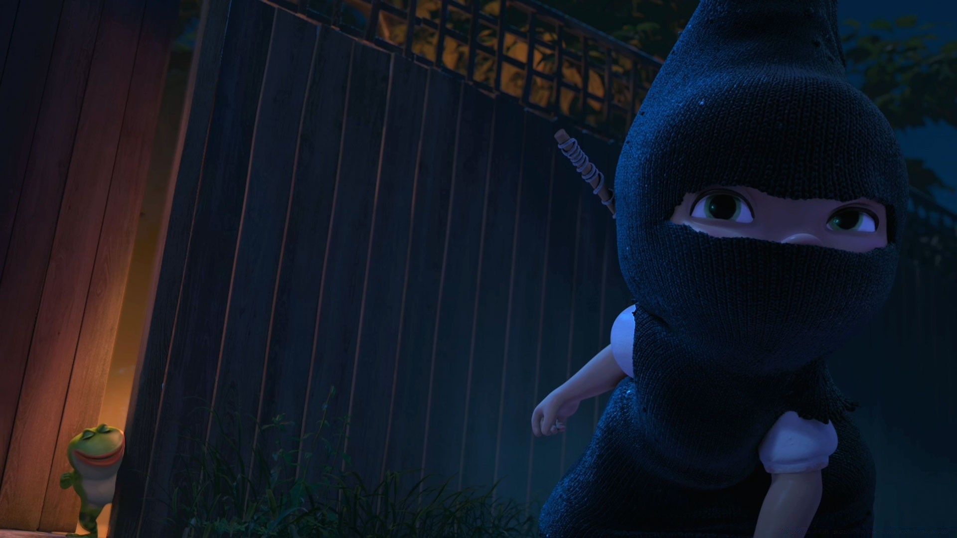 Ein Ausschnitt aus einem Cartoon-Mädchen in einer Maske