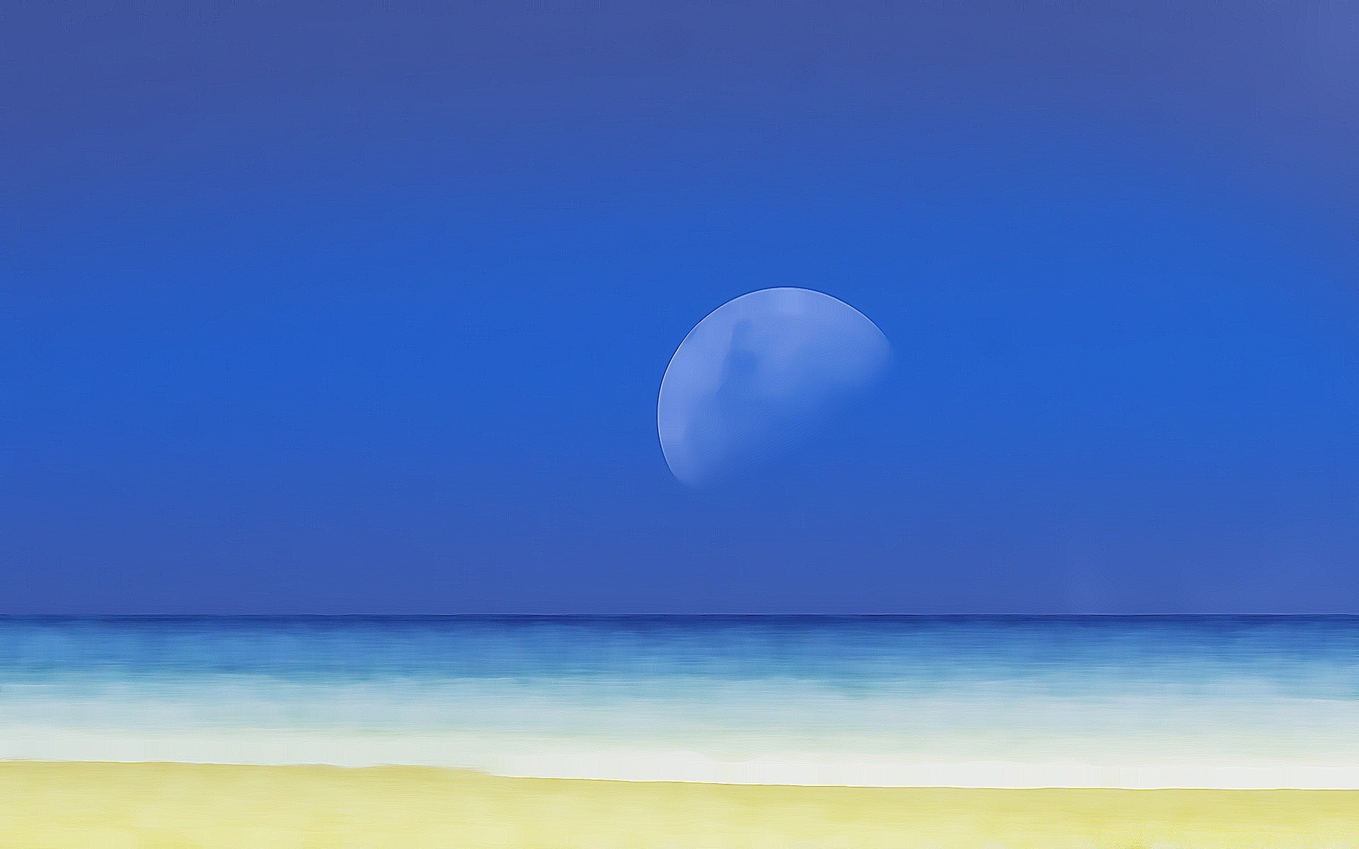 Vollmond-Muster am dunkelblauen Himmel während der Brandung