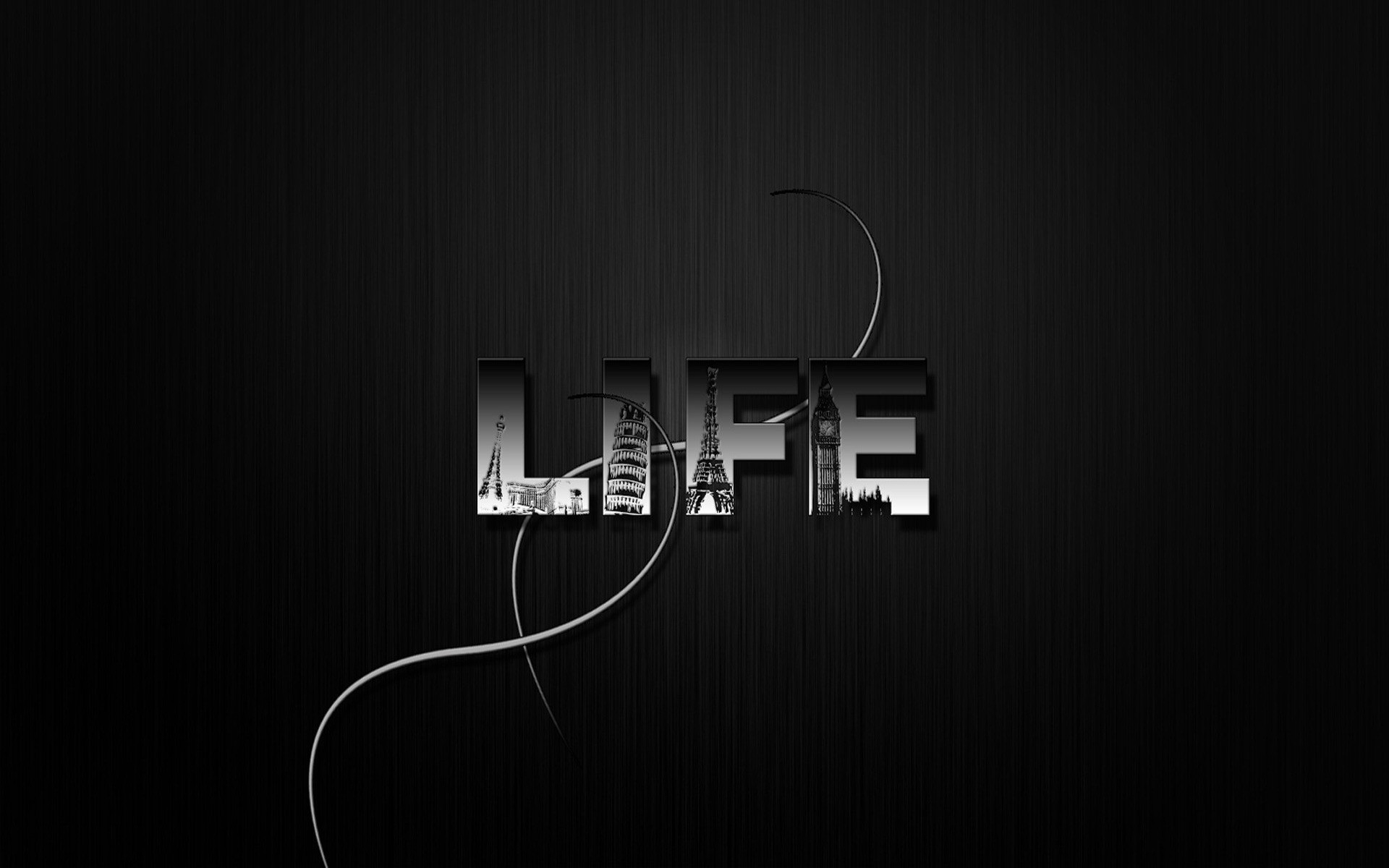 Buchstaben mit gemalten Gebäuden auf Schwarz
