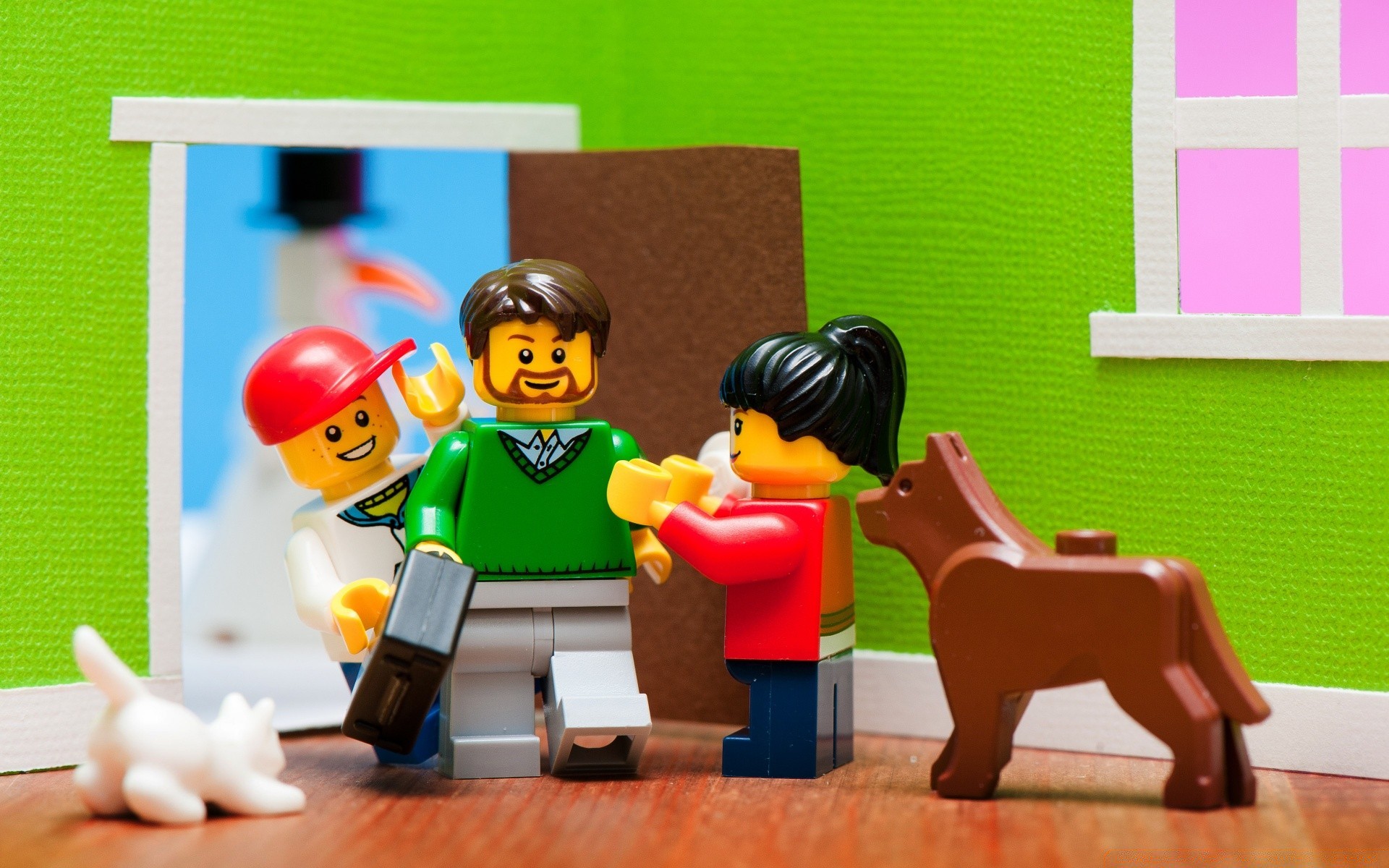 Lego-Spielzeug, das eine Familie im Haus darstellt
