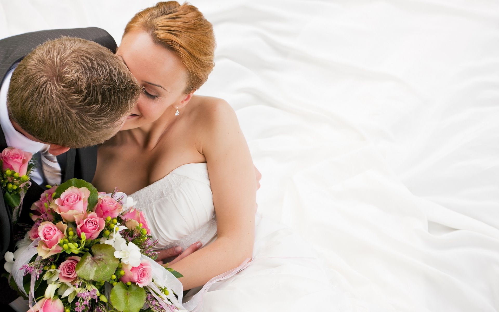 Hochzeitsfoto des Paares auf weißem Hintergrund