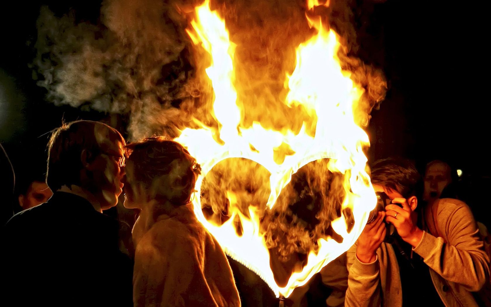 Fotoshooting vor dem hintergrund eines brennenden herzensFotoshooting vor dem Hintergrund eines brennenden Herzens