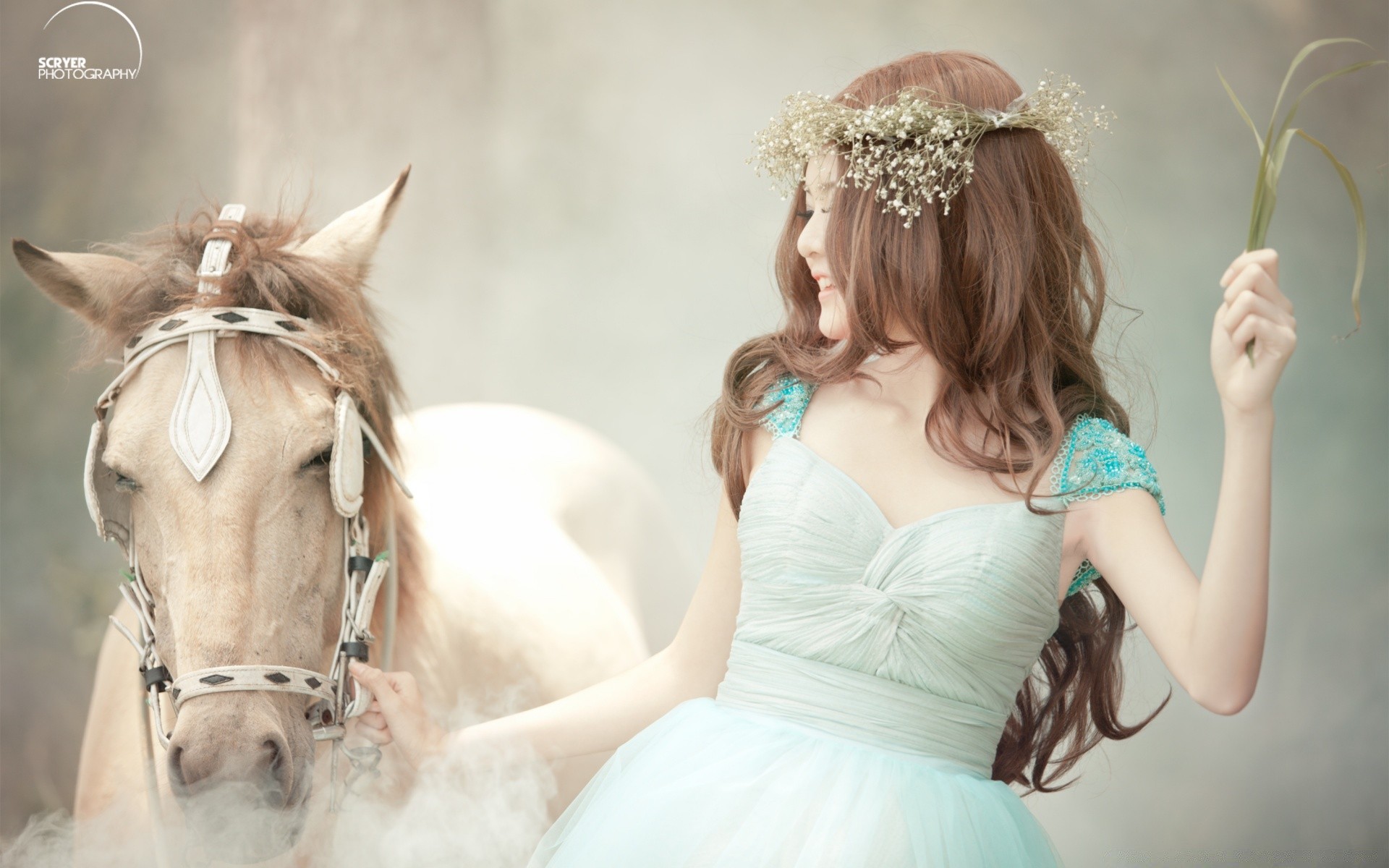 Mädchen von hinten im Hochzeitskleid in der Natur