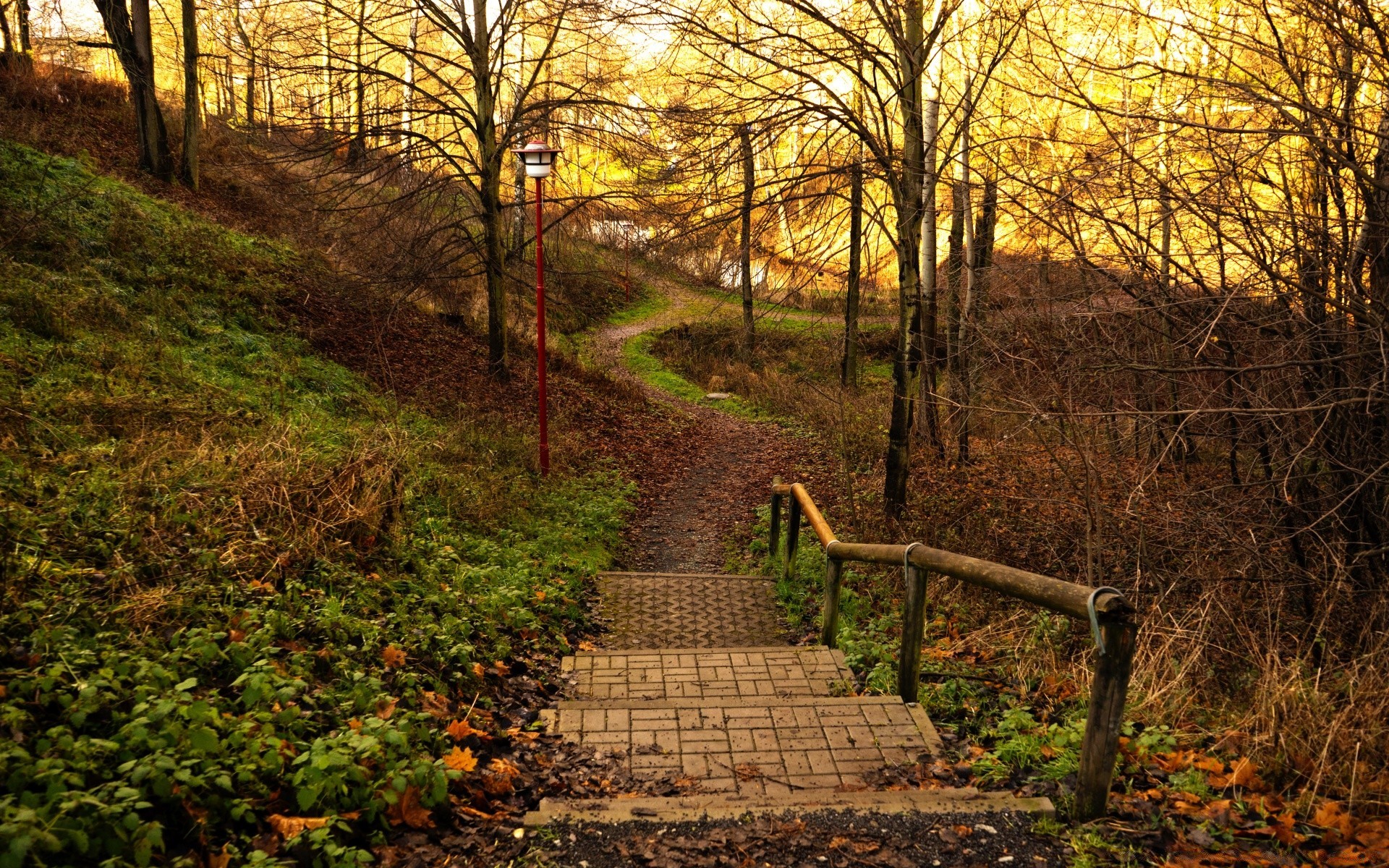 Treppe im Herbstwald am Nachmittag