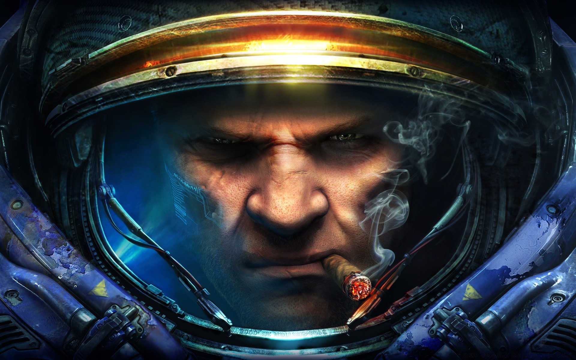 Ein held aus einem futuristischen spiel in blautönenEin Held aus einem futuristischen Spiel in Blautönen