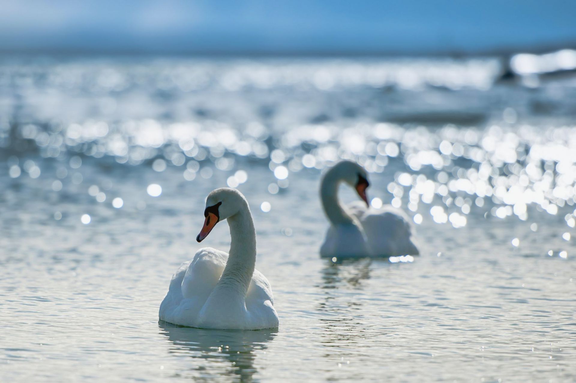 Zwei weiße Schwäne auf der Wasseroberfläche