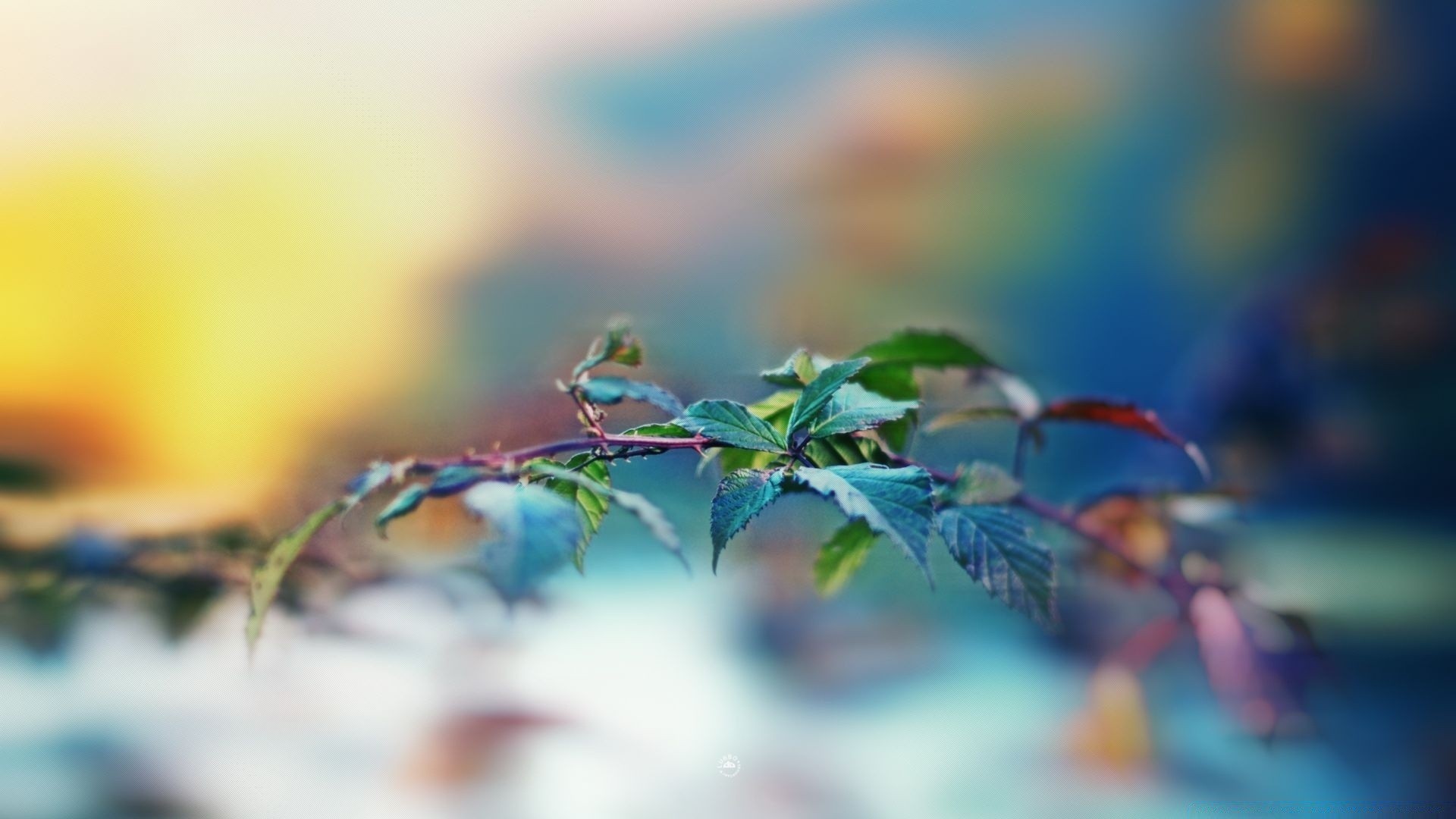 Grüner Zweig mit Blättern auf verschwommenem Hintergrund