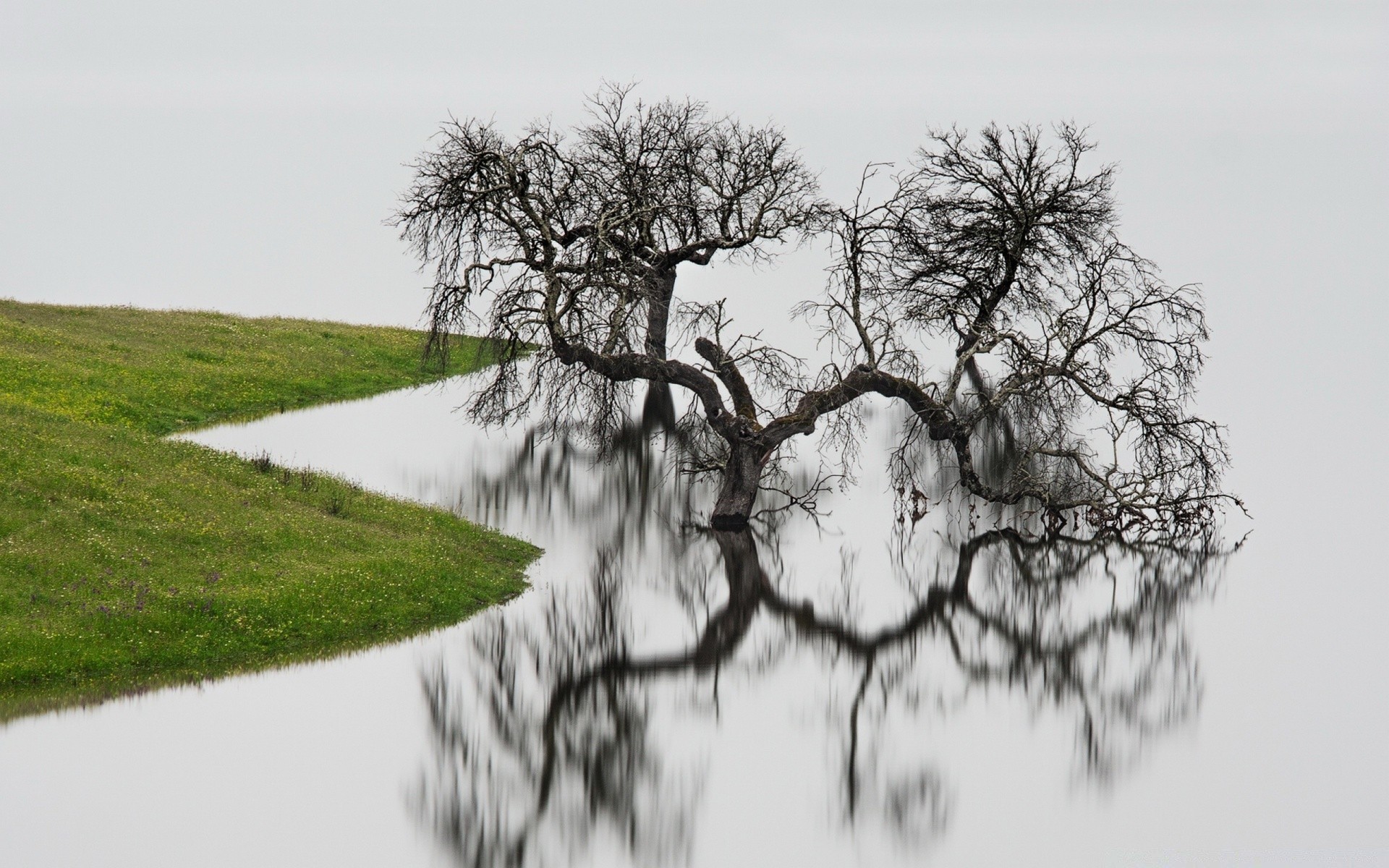 DER BAUM SPIEGELT SICH IM WASSERSPIEGEL WIDER