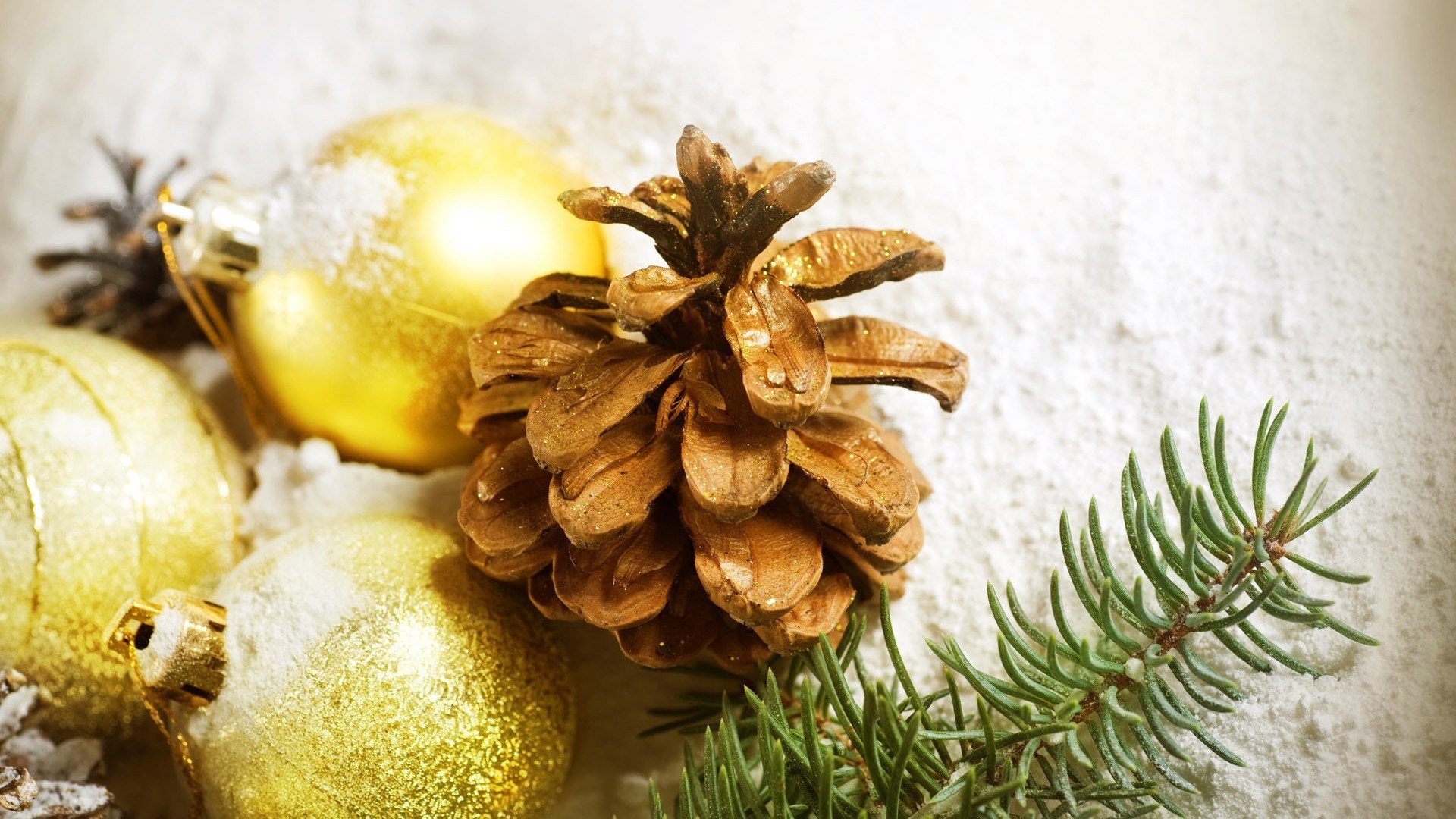 Goldene Kugeln und Tannenzapfen