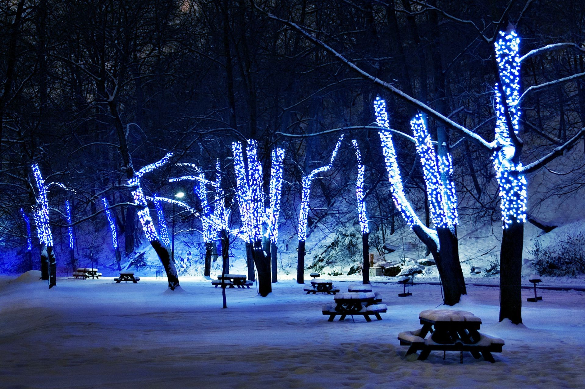Hervorgehobene Stämme von schneebedeckten Bäumen
