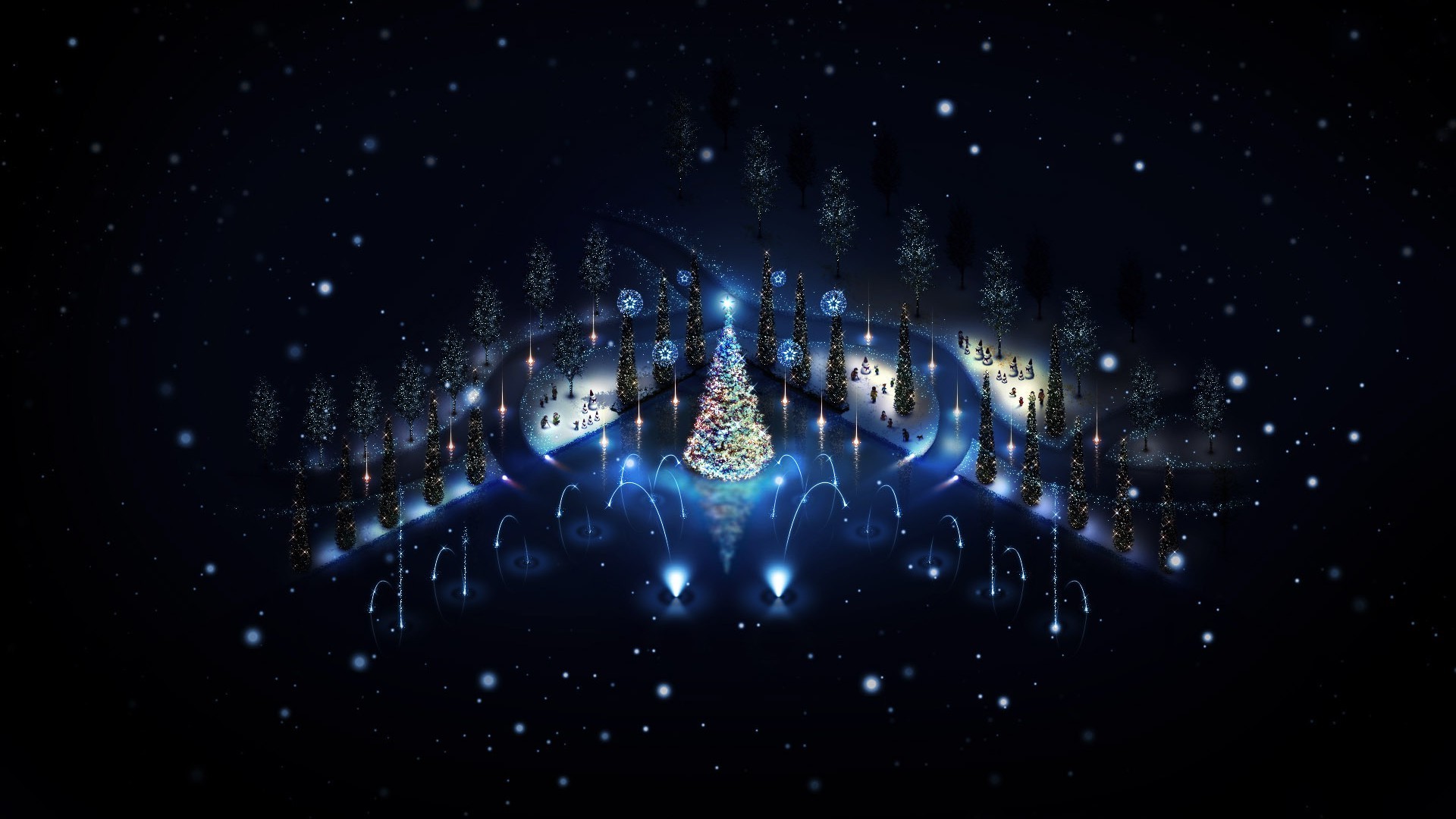 Neujahrskompassion aus Papier mit Rentieren und Weihnachtsbäumen