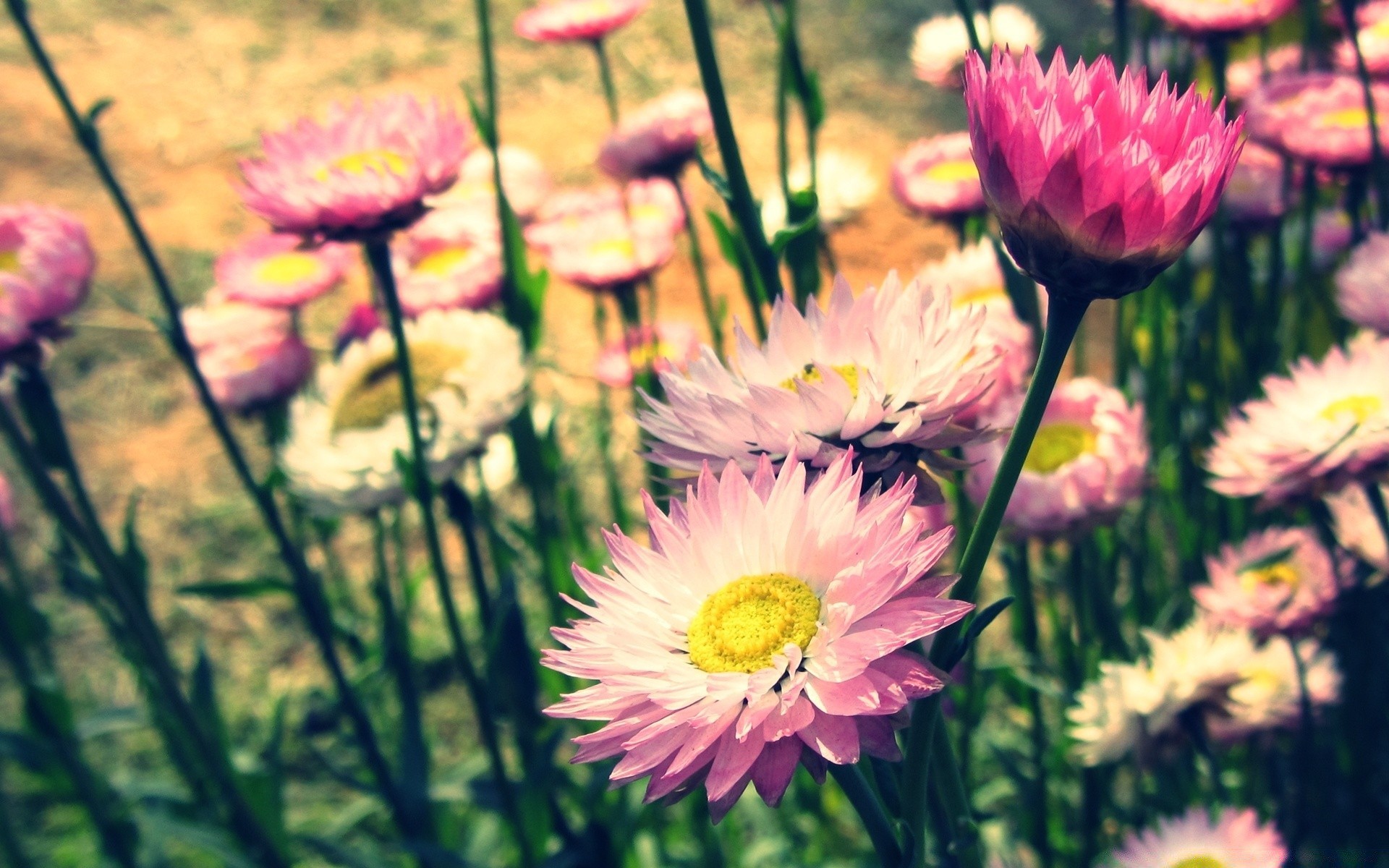 Ein Feld aus rosa, weißen, orangefarbenen Tulpen