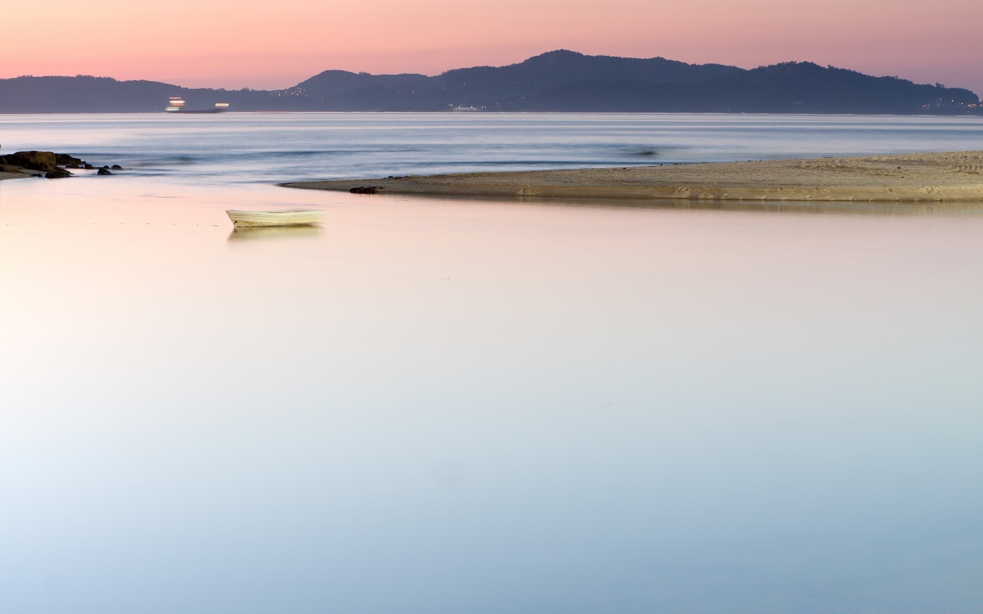 Rosa Sonnenuntergang am blauen Himmel über dem Meer