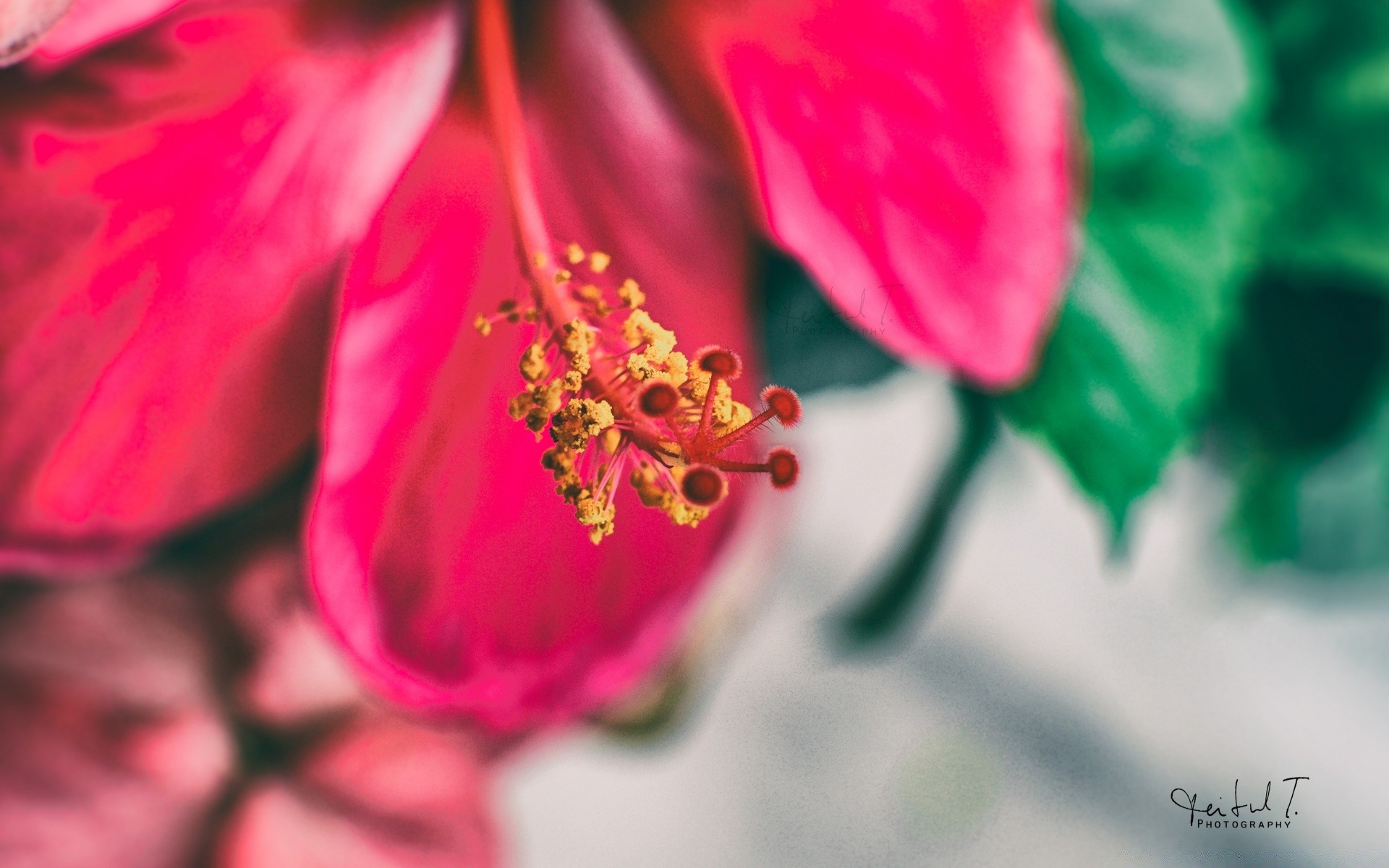 Nahaufnahme von Staubblättern einer leuchtend rosa Blume