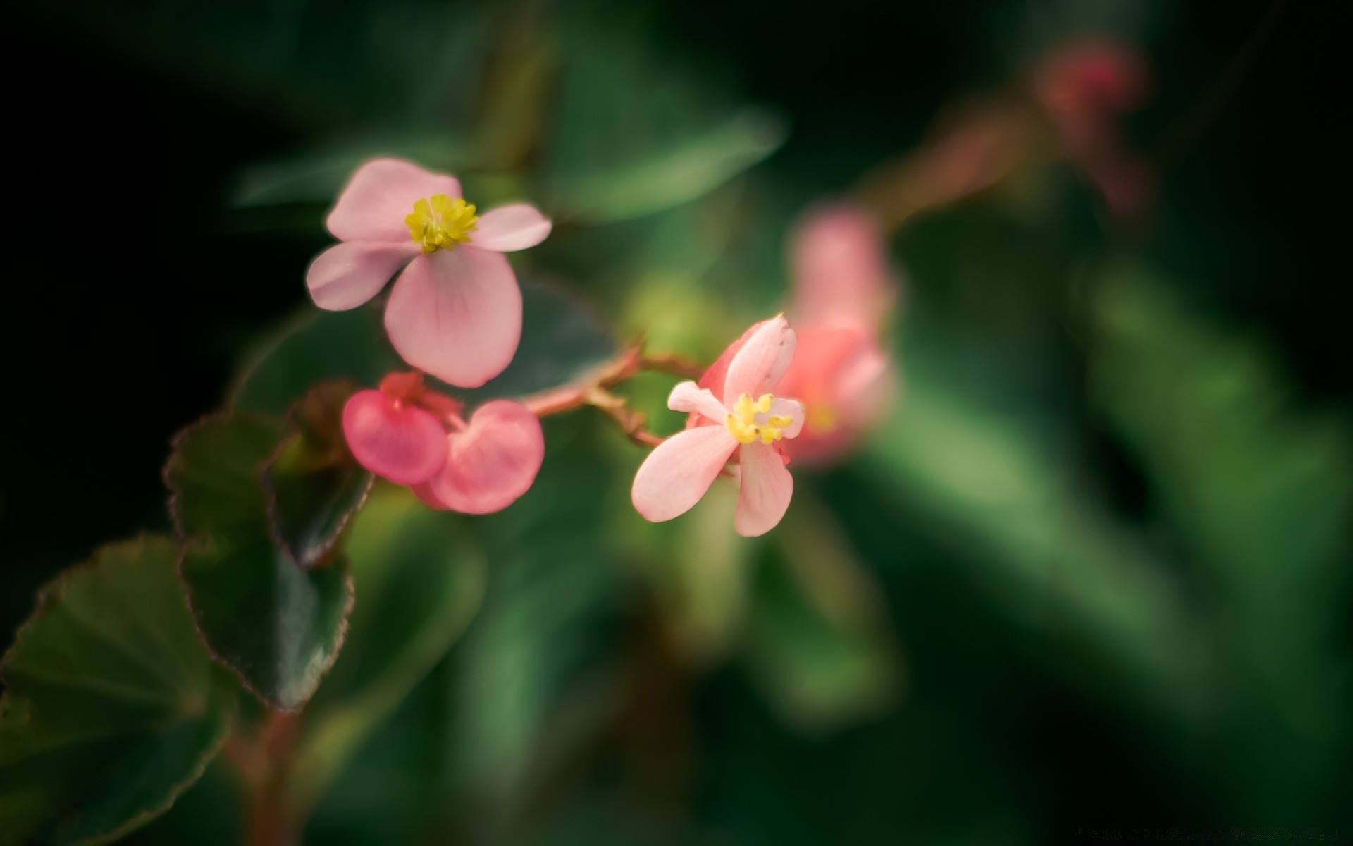 Blumen mit rosa Blättern auf einem dunklen Grünhintergrund