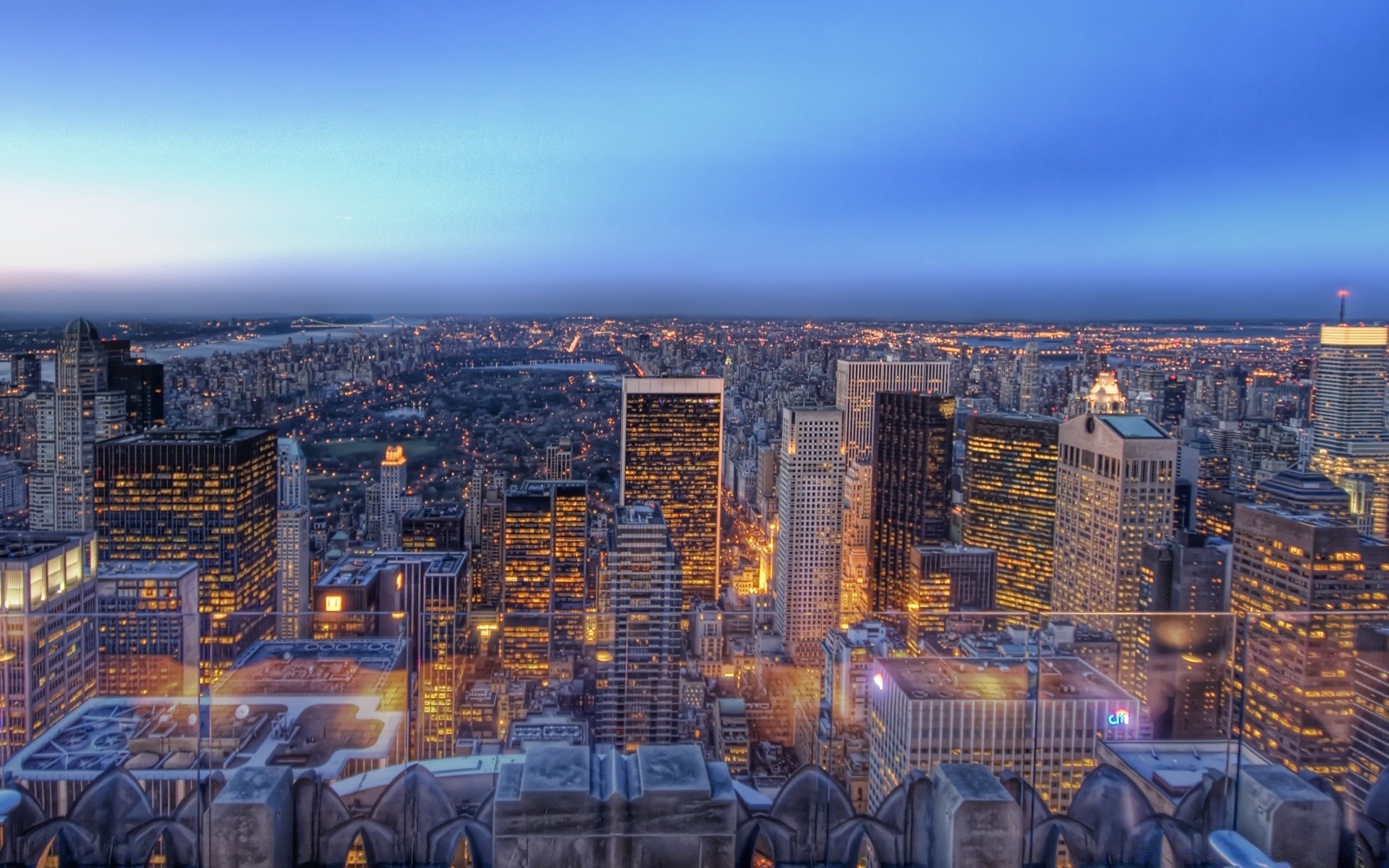 Schönes Panorama der Stadt in hellen Lichtern am Abend