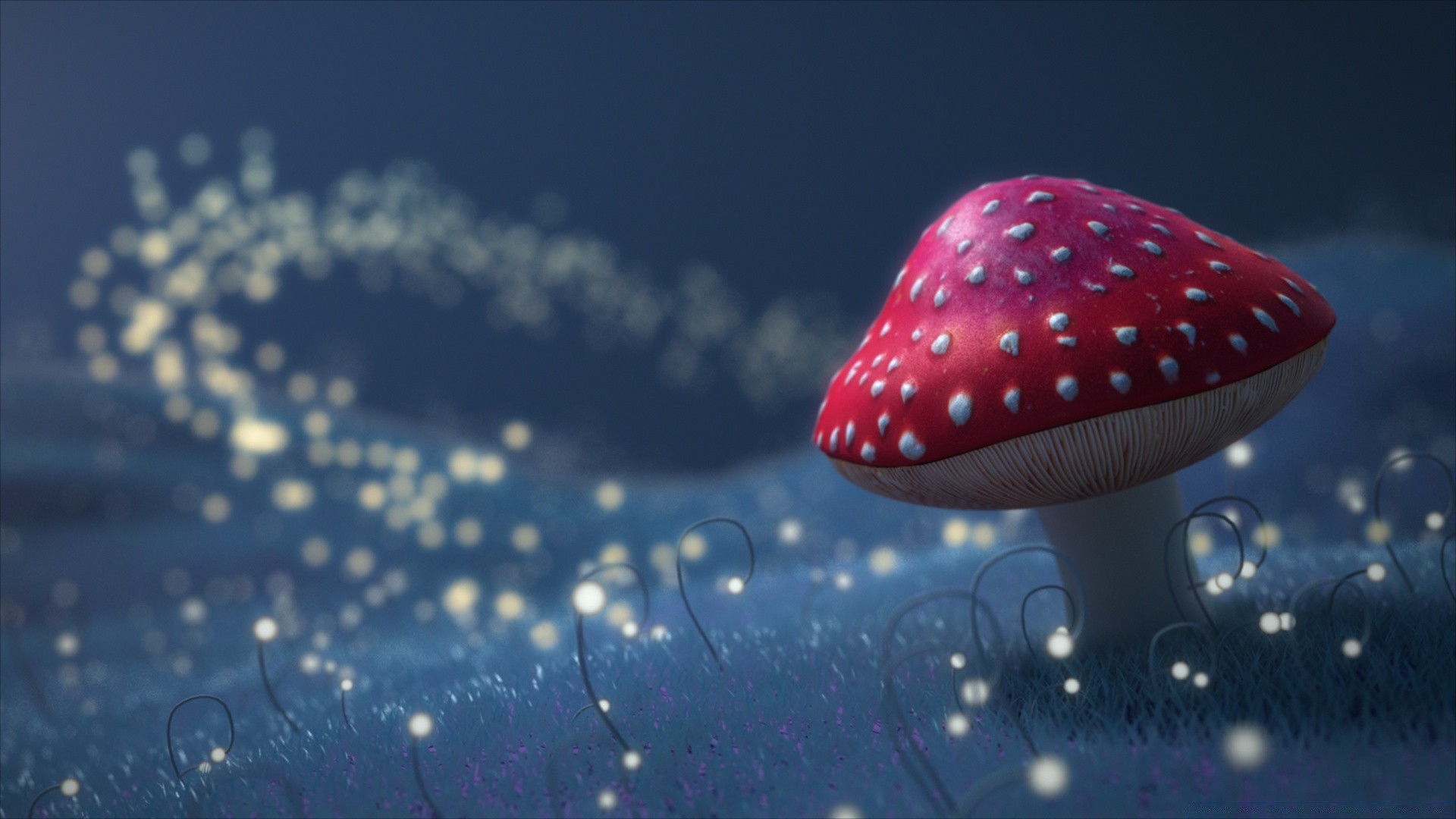 Fliegenpilz auf einer lichtung. 3d-grafik