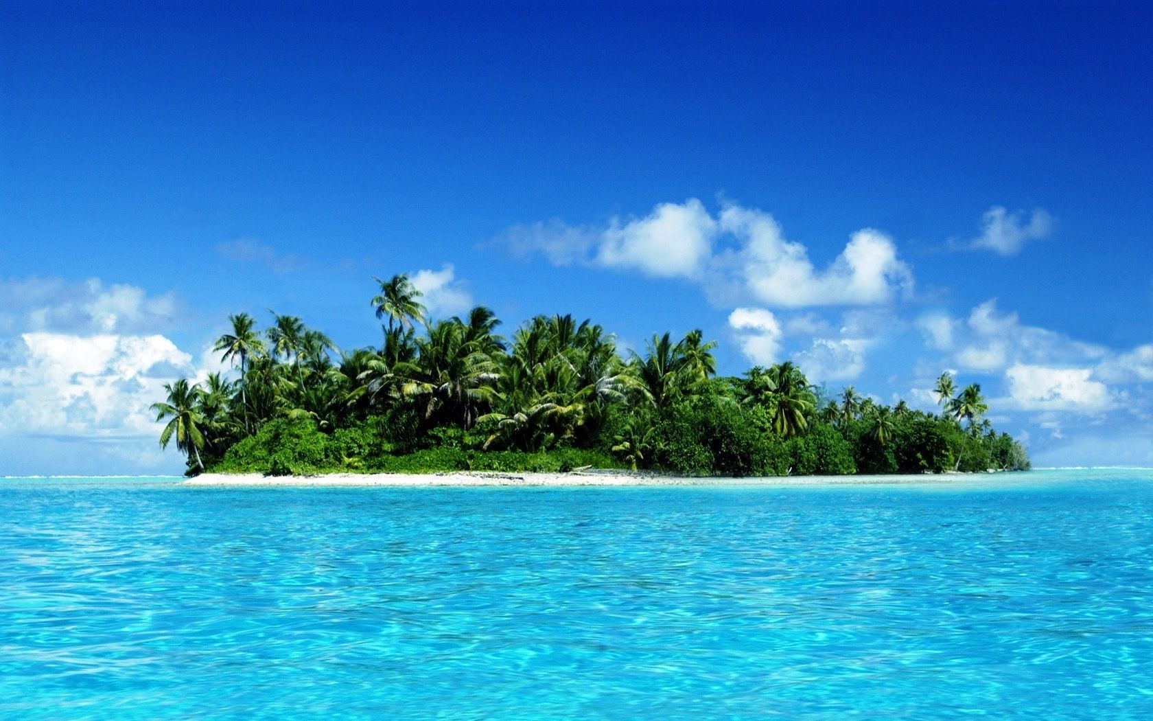 Eine einsame Insel mit einer Palme mitten im Ozean