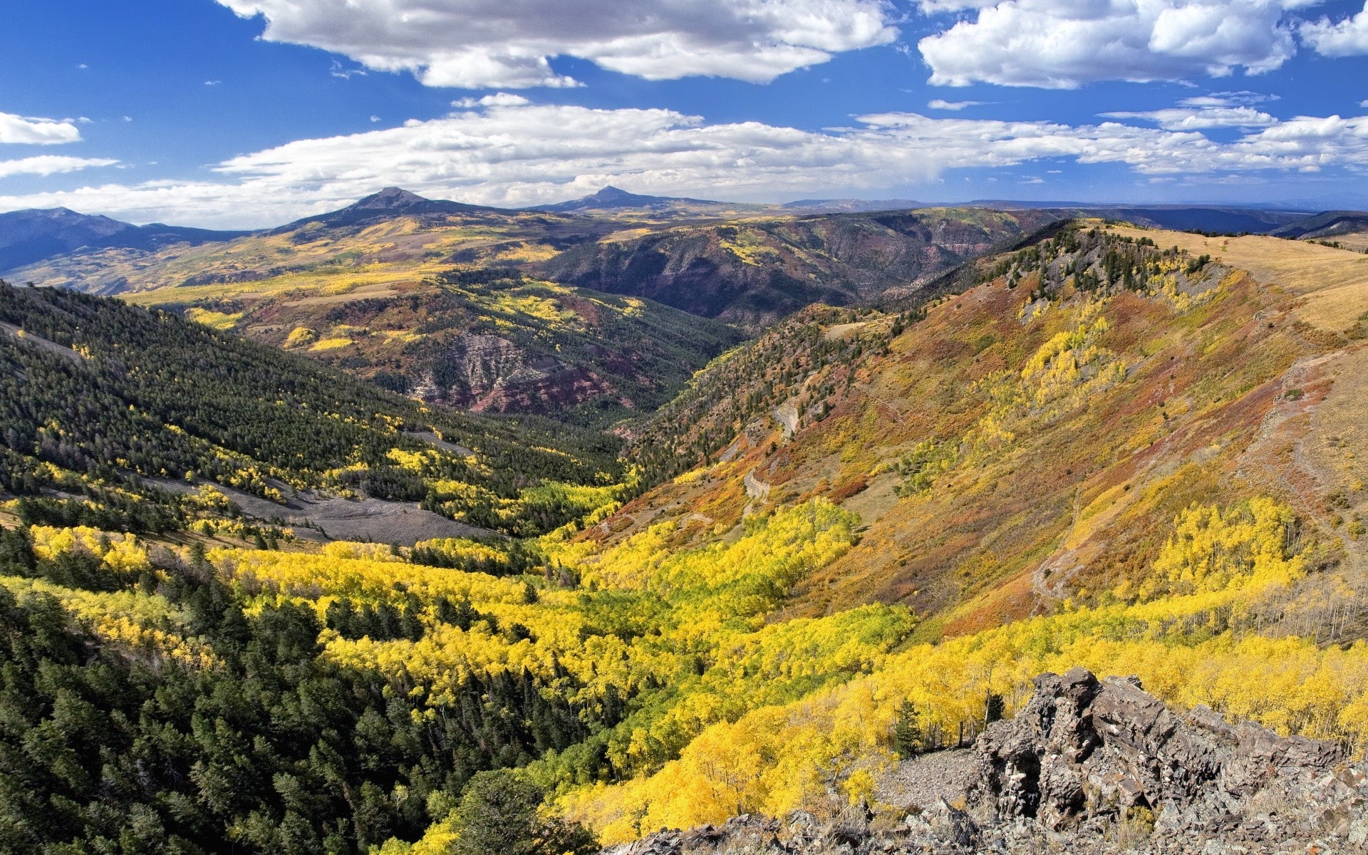 Landschaft der bewaldeten Berge am Himmelshintergrund