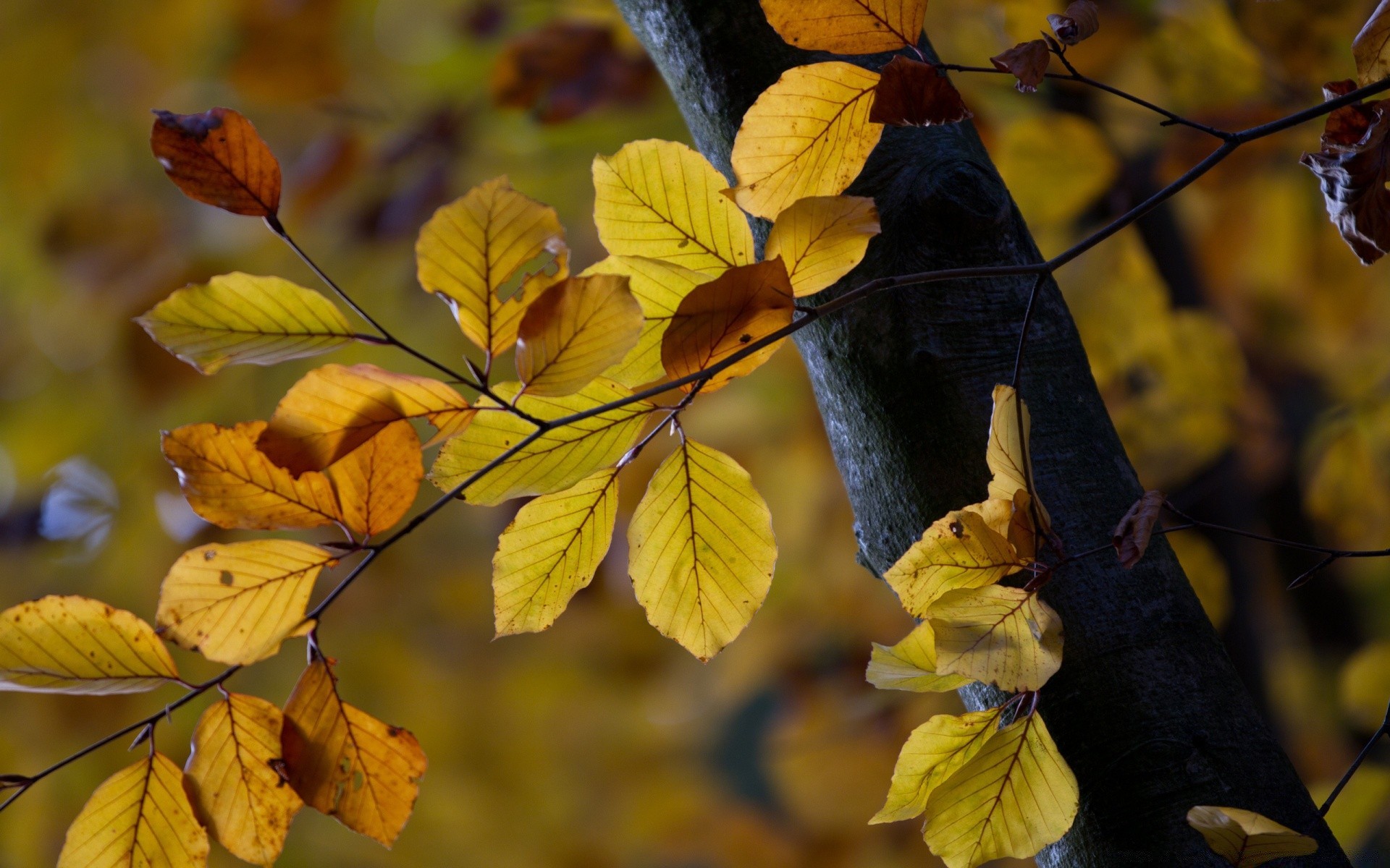 Ein baum, auf dem zweige mit gelben blättern stehenEin Baum, auf dem Zweige mit gelben Blättern stehen