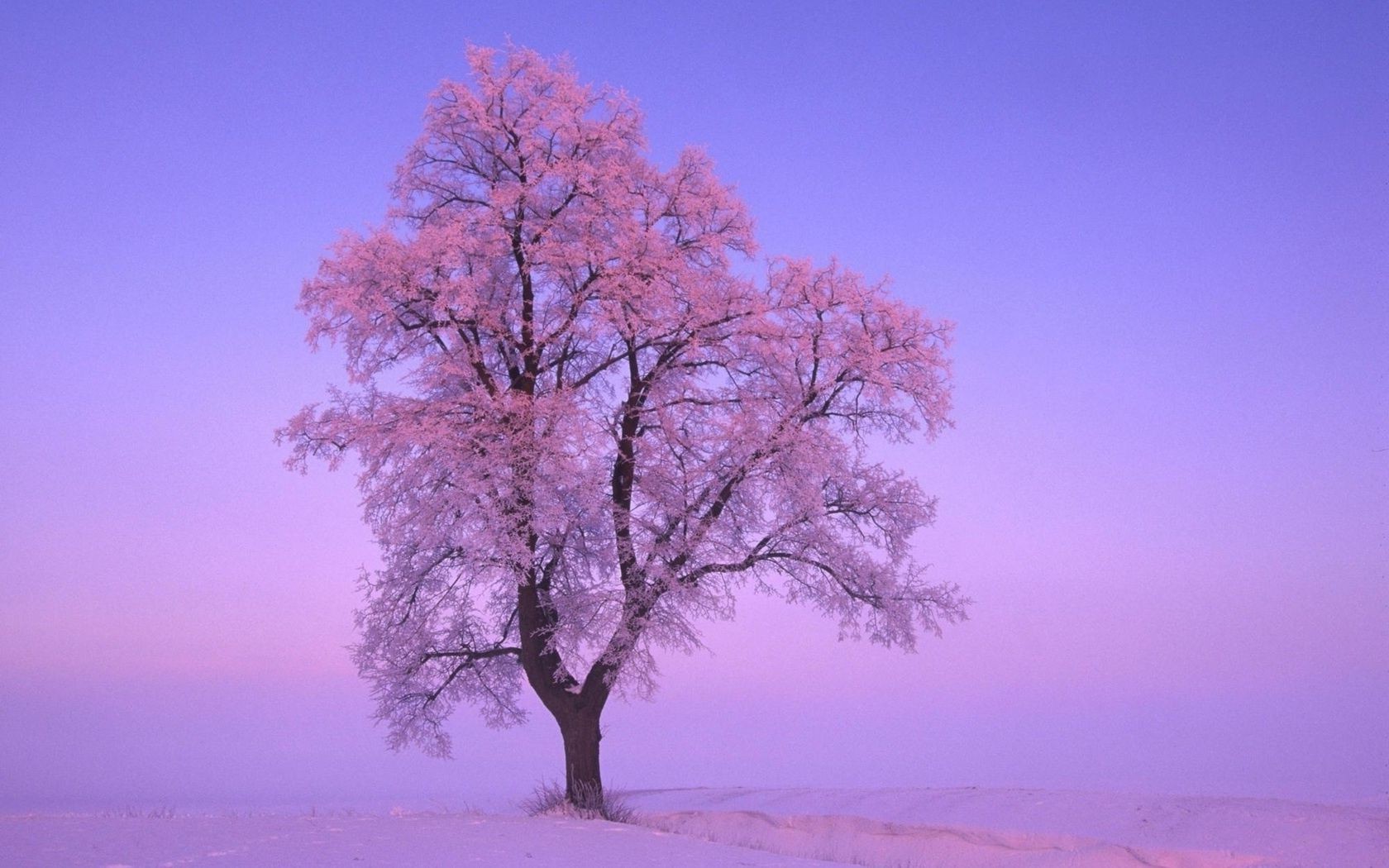 Einsamer Baum im Winter im Frost