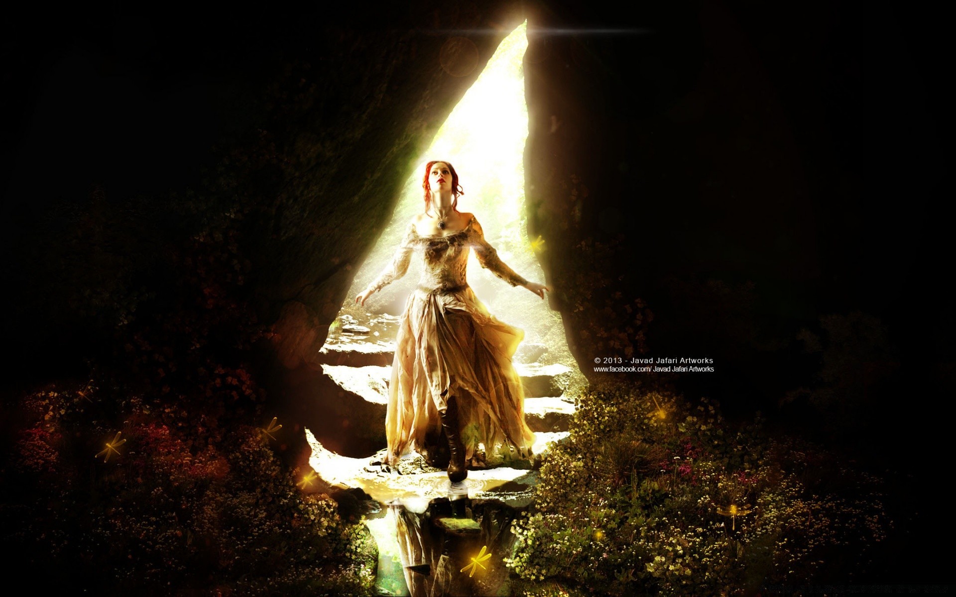 Rothaarige mädchen in einem langen kleid am felsenRothaarige Mädchen in einem langen Kleid am Felsen