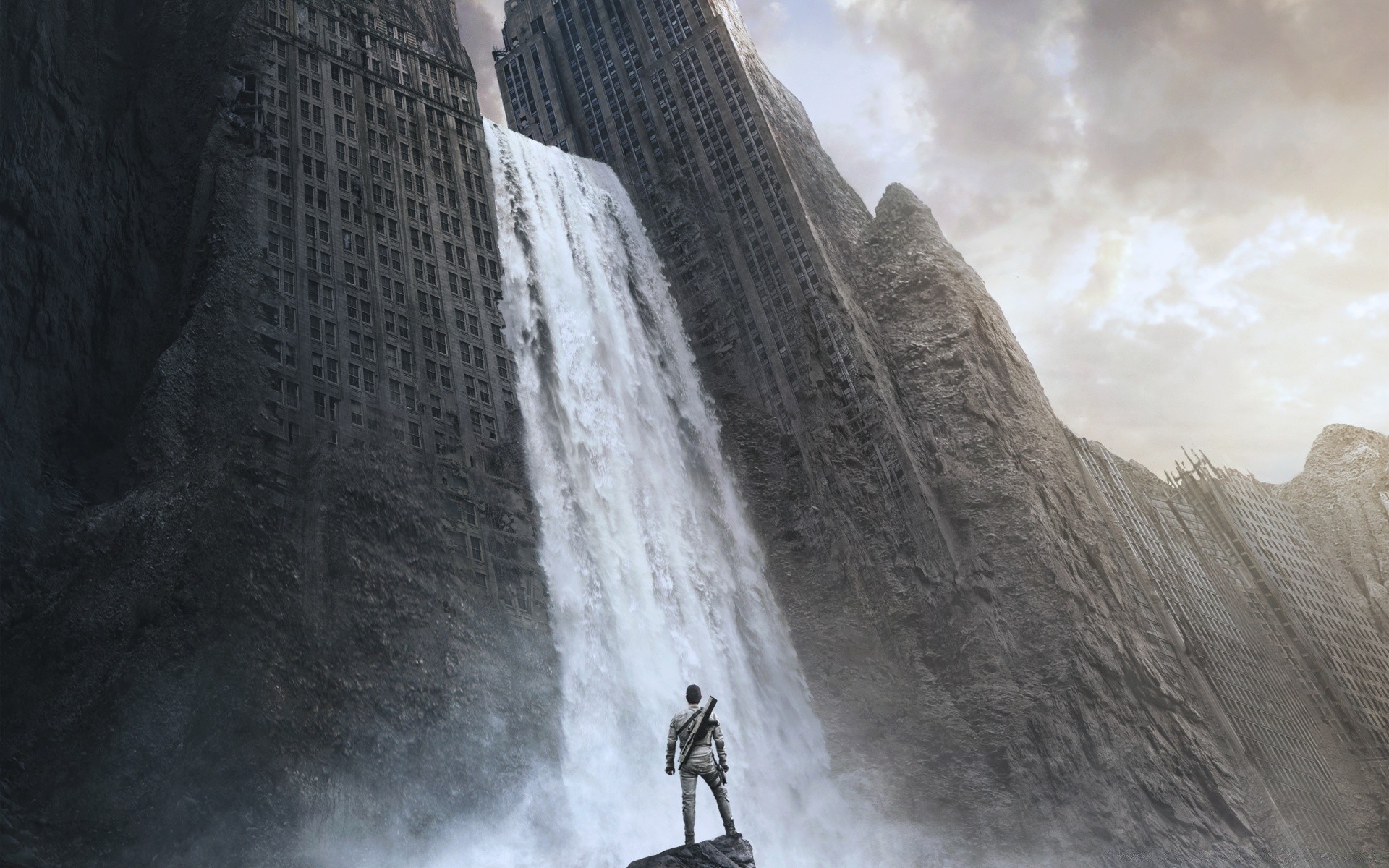 Ein mann in einer weißen jacke vor dem hintergrund der stadt mit einer pistole in der handEin Mann in einer weißen Jacke vor dem Hintergrund der Stadt mit einer Pistole in der Hand