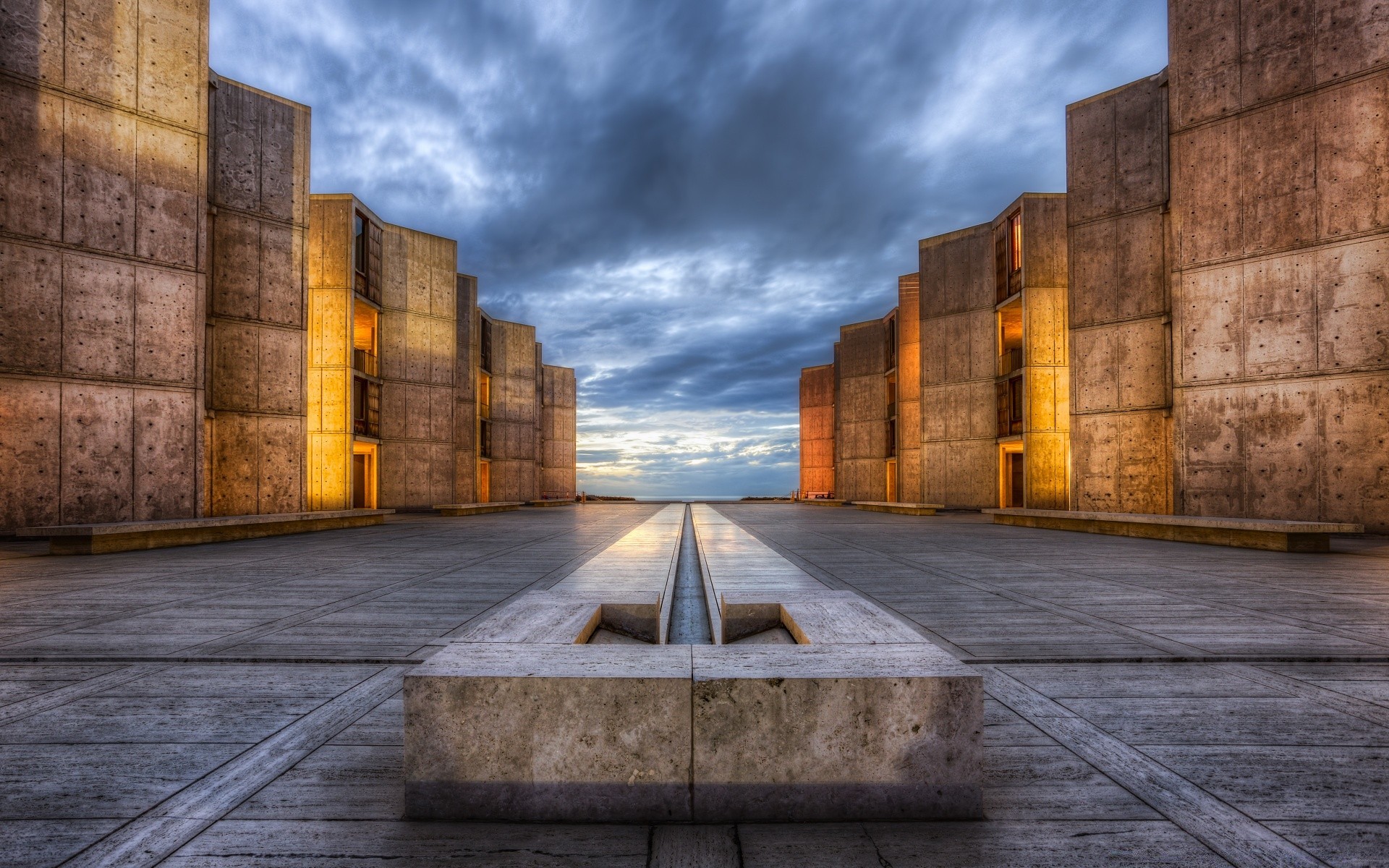 Architektonisches Ensemble bei Sonnenuntergang