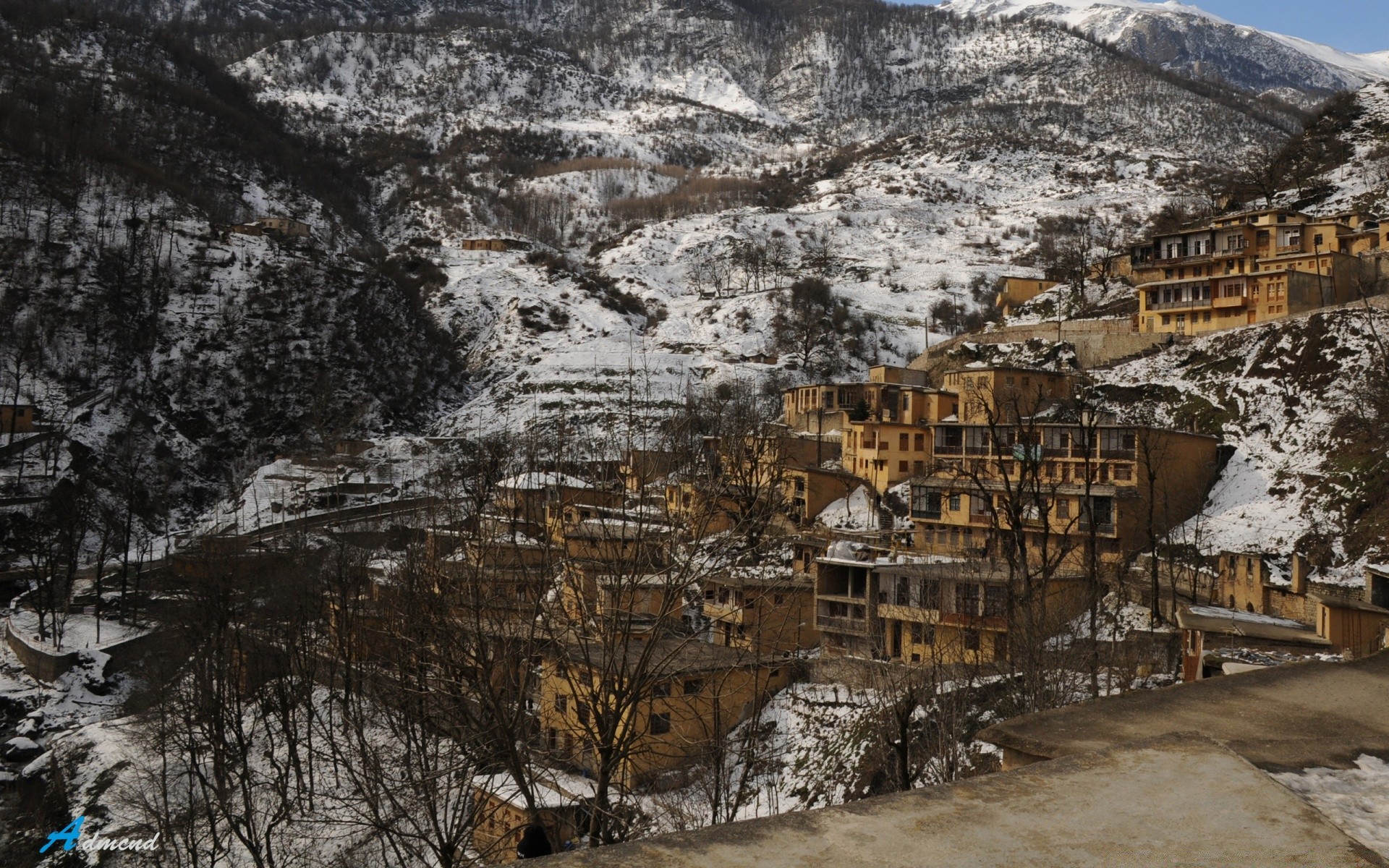 Häuser in den schneebedeckten Bergen verloren