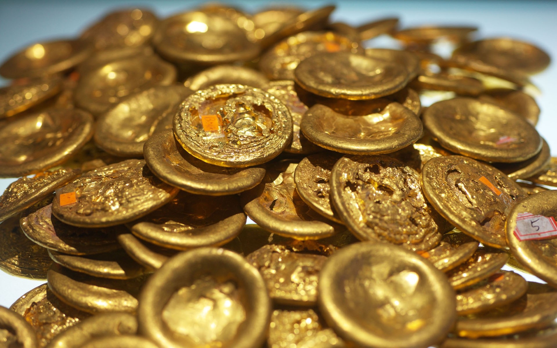 Weißer Tempel mit goldenen Kuppeln im Sommer