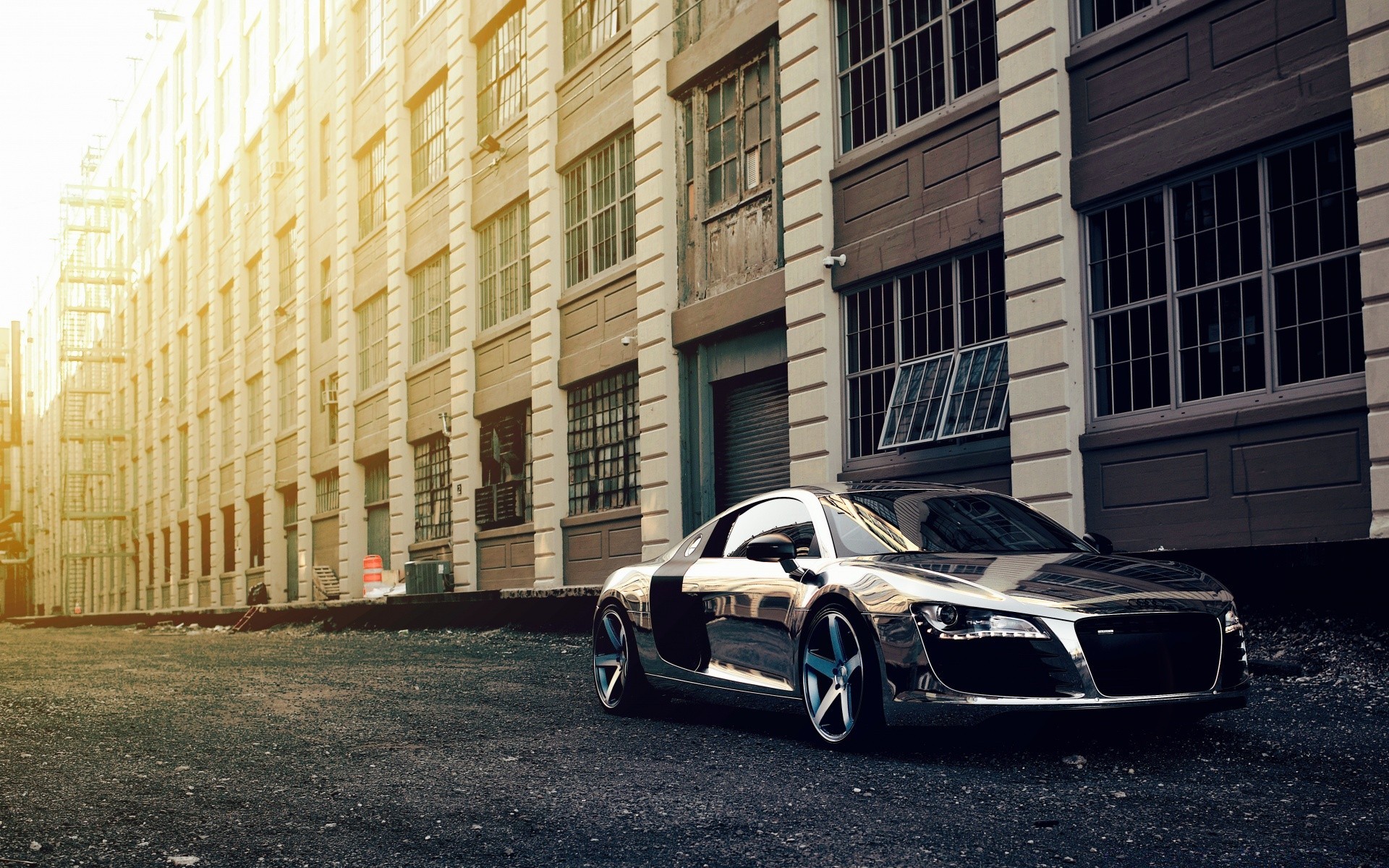 Super schneeweißes auto vor dem hintergrund von wolkenkratzernSuper schneeweißes Auto vor dem Hintergrund von Wolkenkratzern
