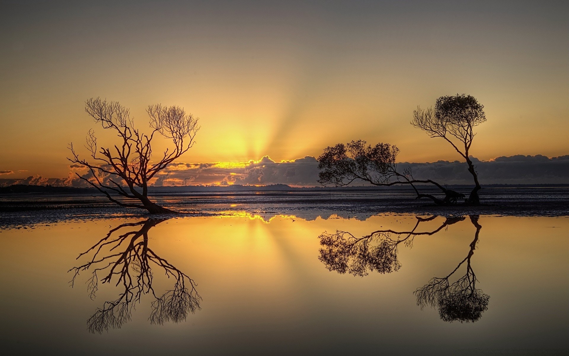 Am wasser setzt sich die sonne am sonnenuntergang unterAm Wasser setzt sich die Sonne am Sonnenuntergang unter