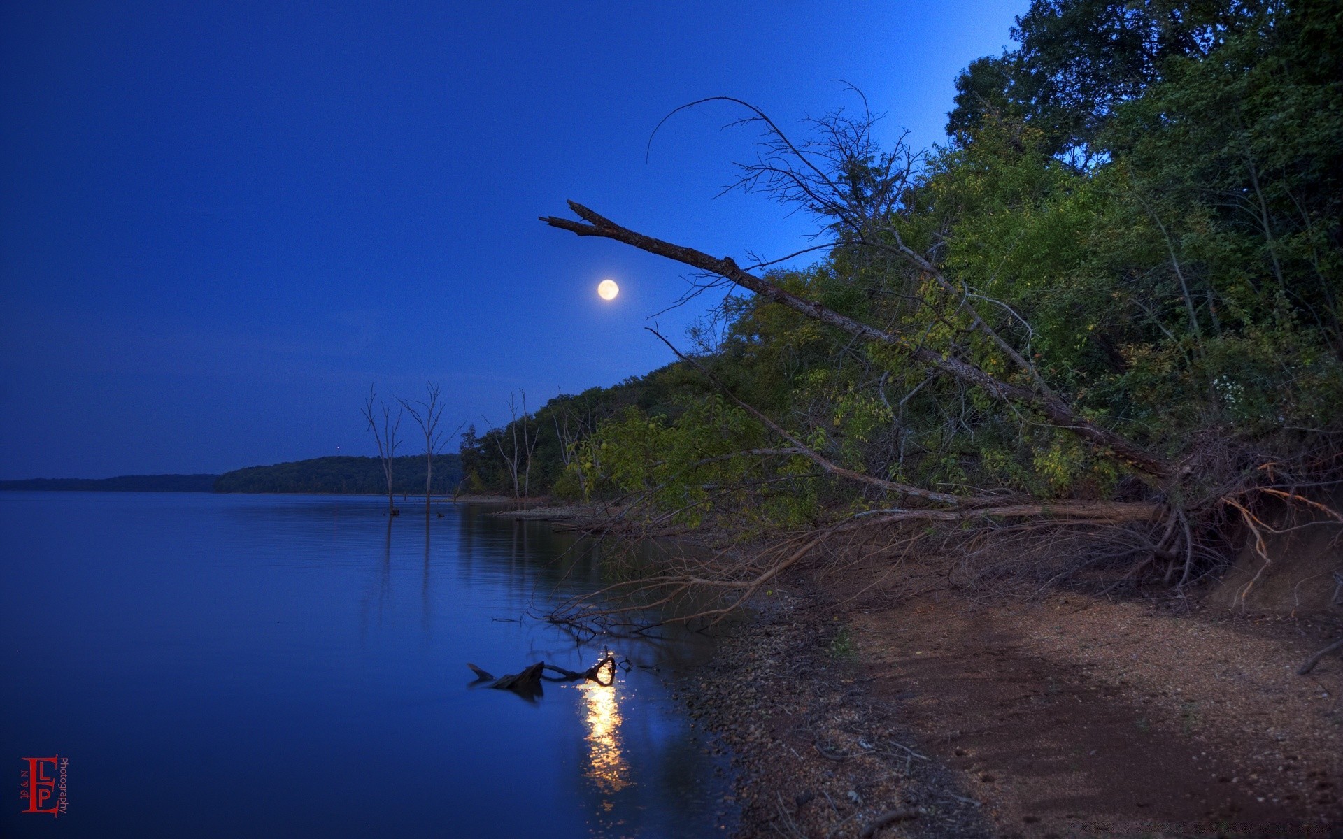Nacht am Flussufer. Reflexion des Mondes im Wasser