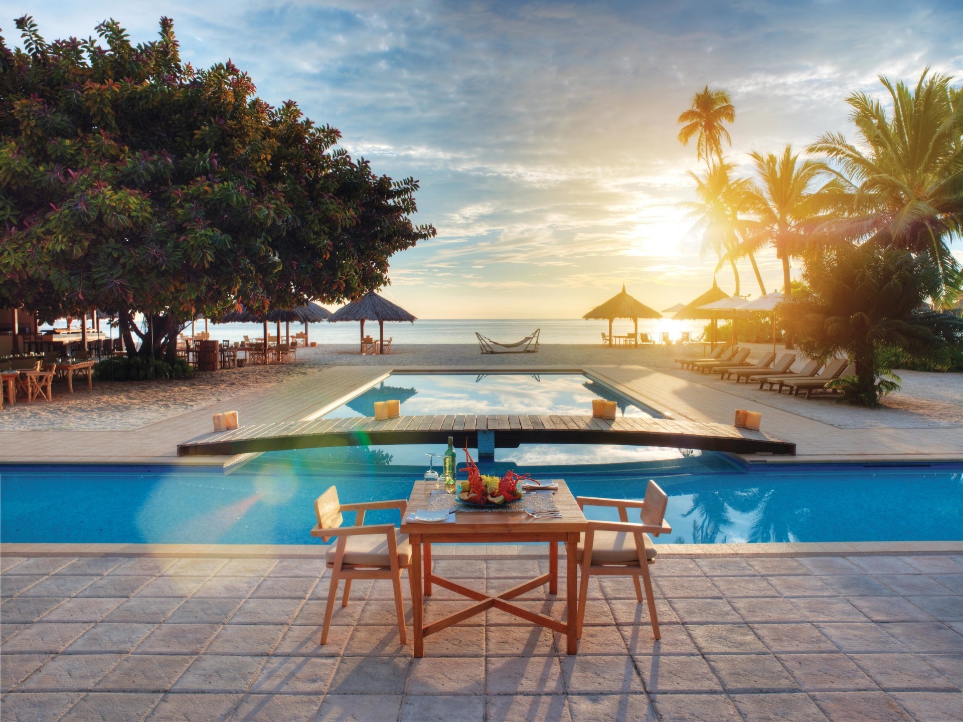 Tisch für zwei Personen im Restaurant am Pool