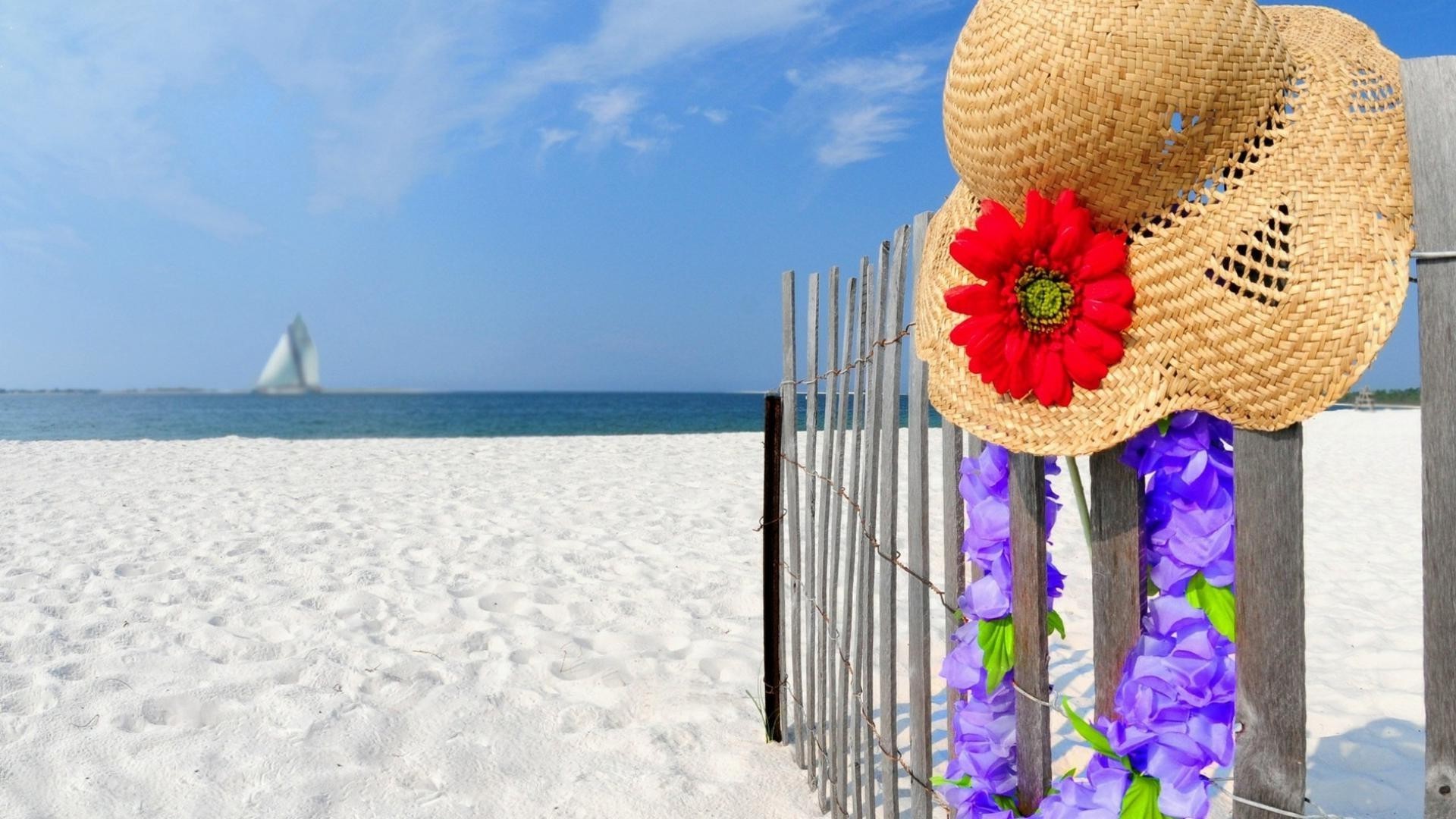 Strohhut am weißen Strand