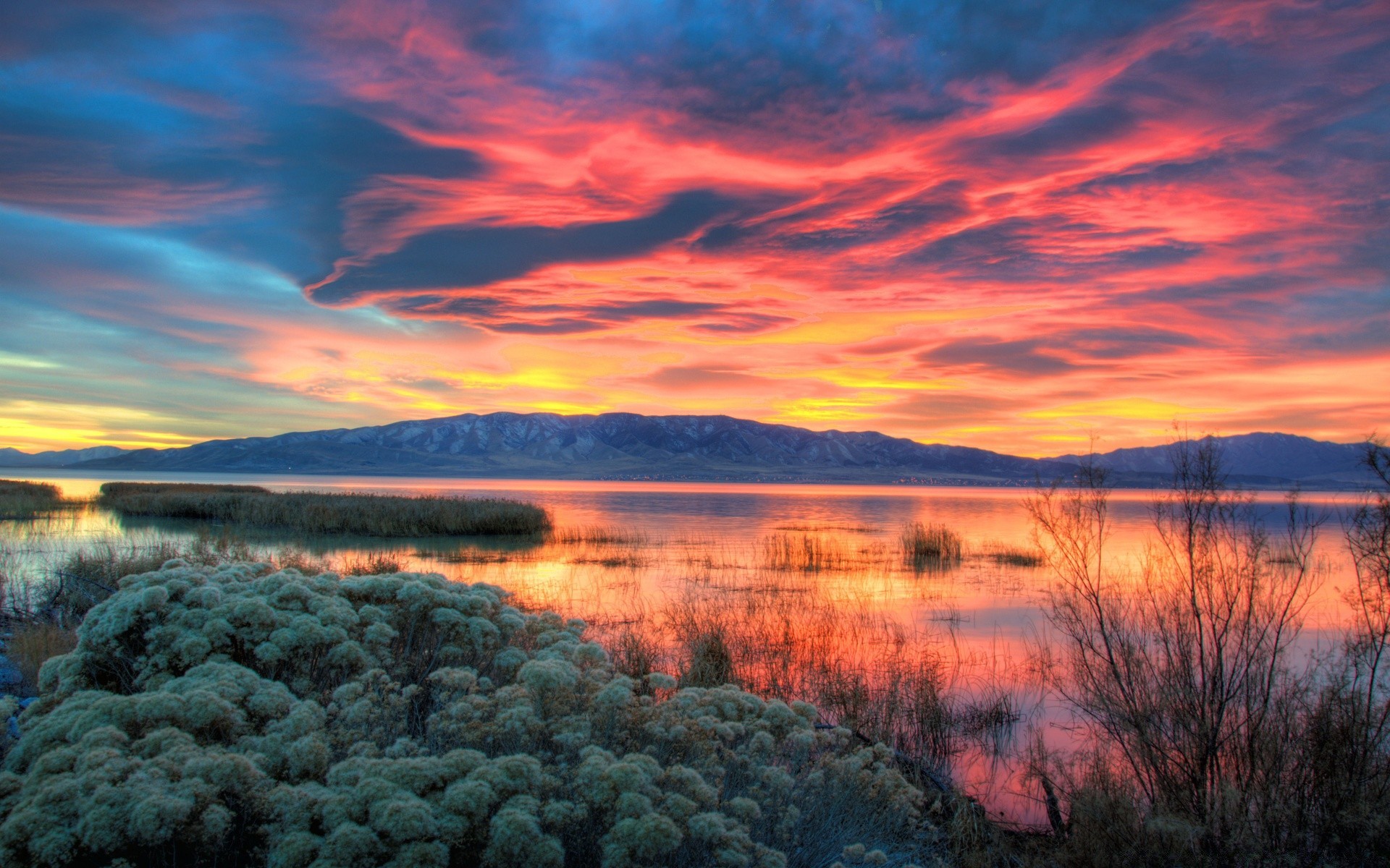 Schöne Natur vor dem Hintergrund des scharlachroten Himmels