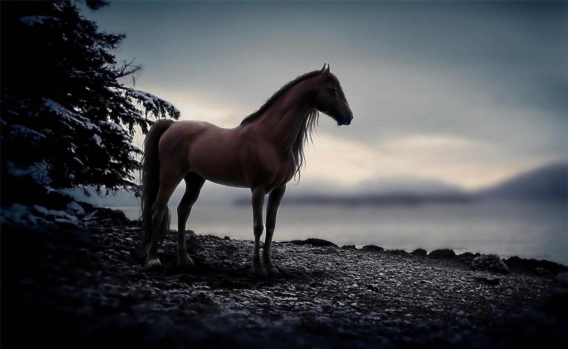 Ein anmutiges Pferd ging an das Ufer des Sees