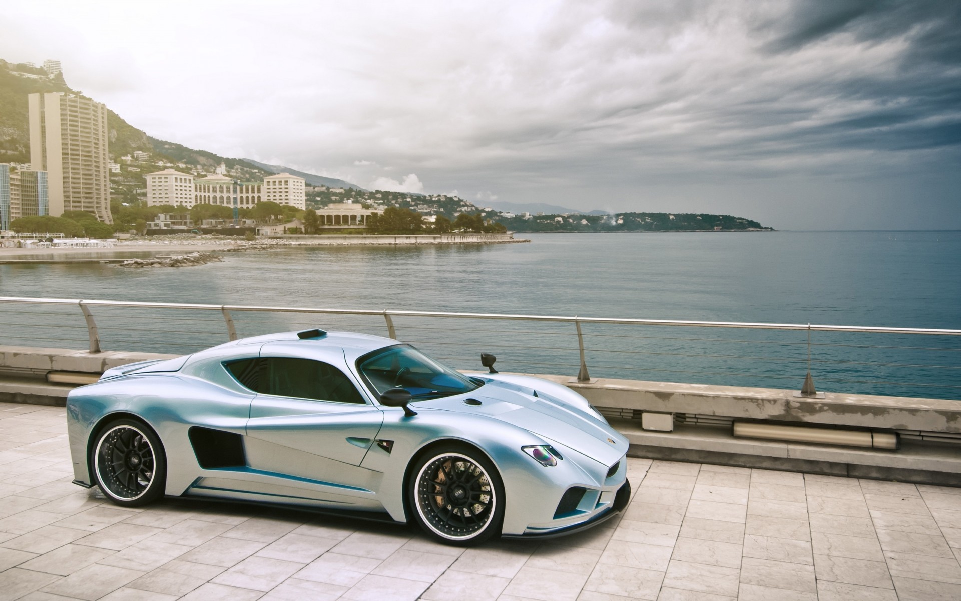 Ein Traum vom Reisen, ein silberner Sportwagen am Pier