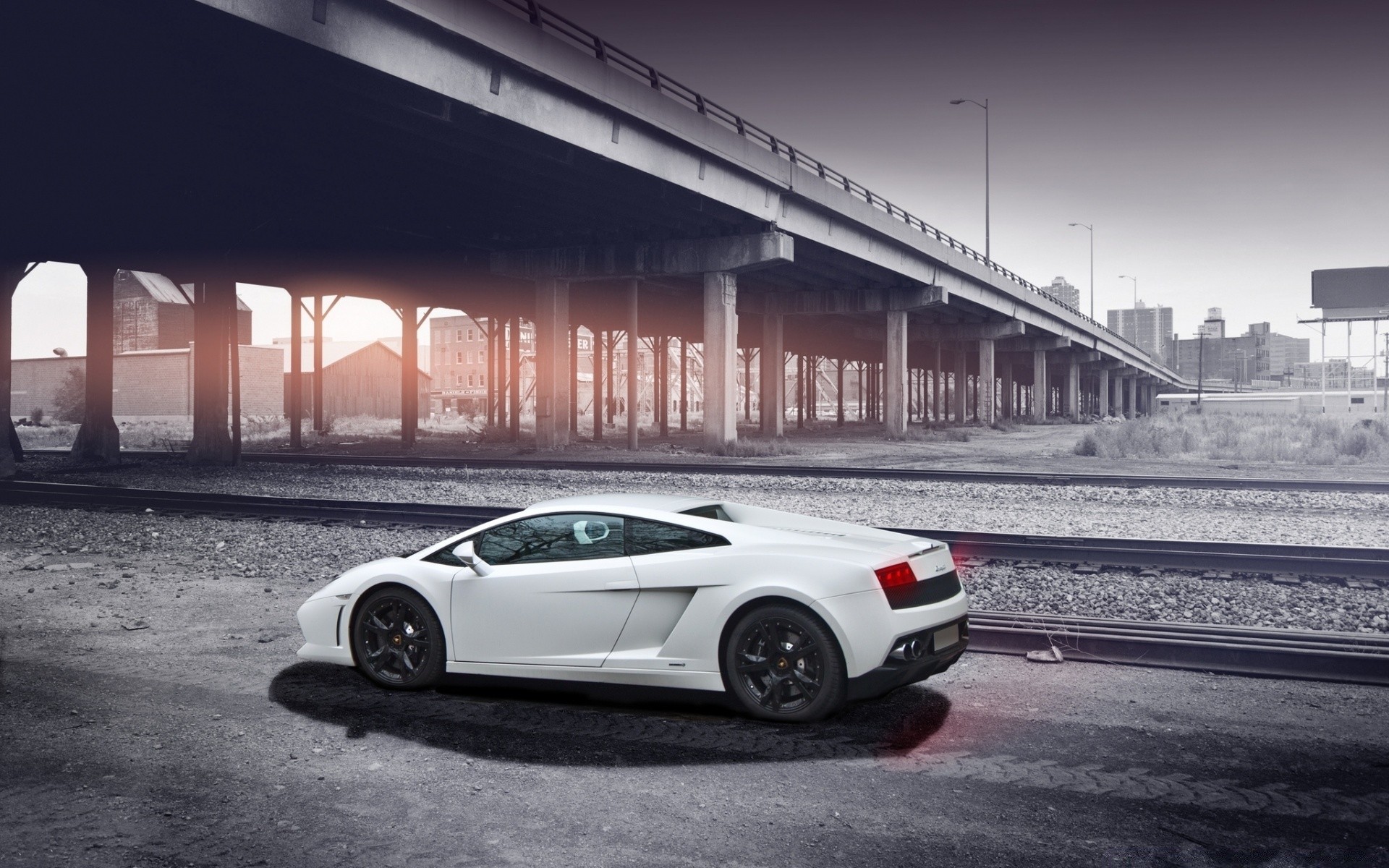 Weißes ausländisches Auto auf dem Hintergrund der Eisenbahnstraße