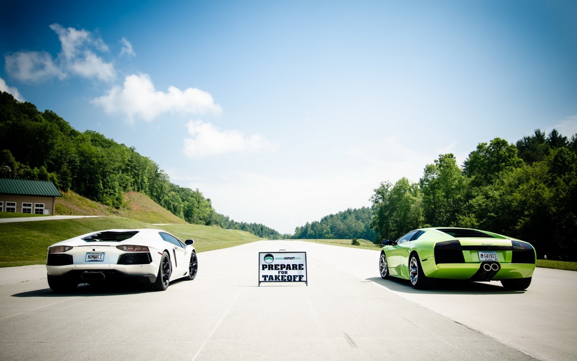 Zwei Rennwagen stehen am Start