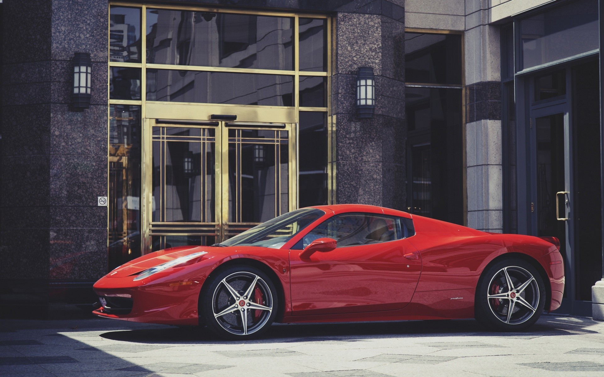 Ein Auslandsauto auf dem Parkplatz. auto auf dem Bürgersteig