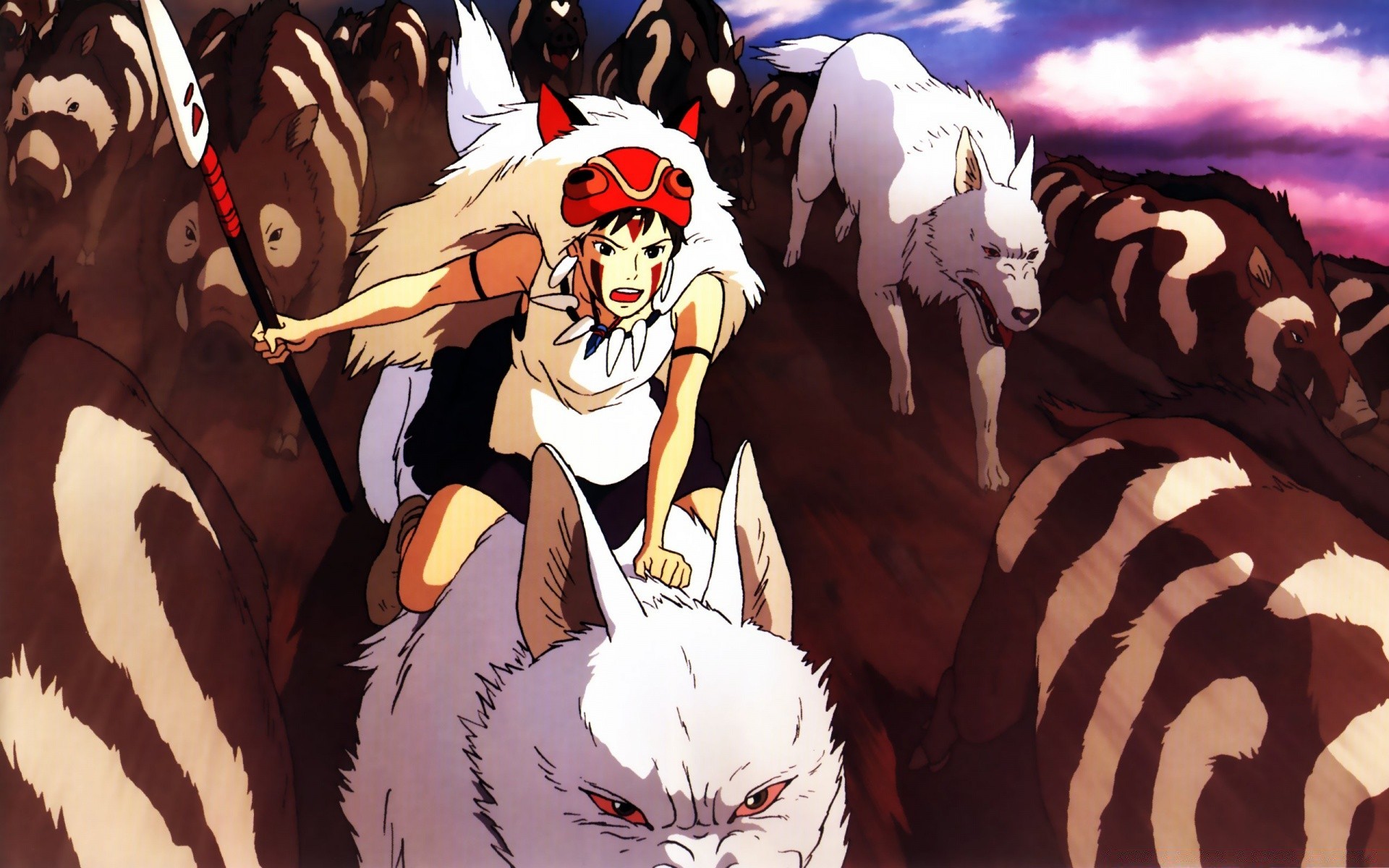 Anime. Mädchen Reiten auf einem Wolf