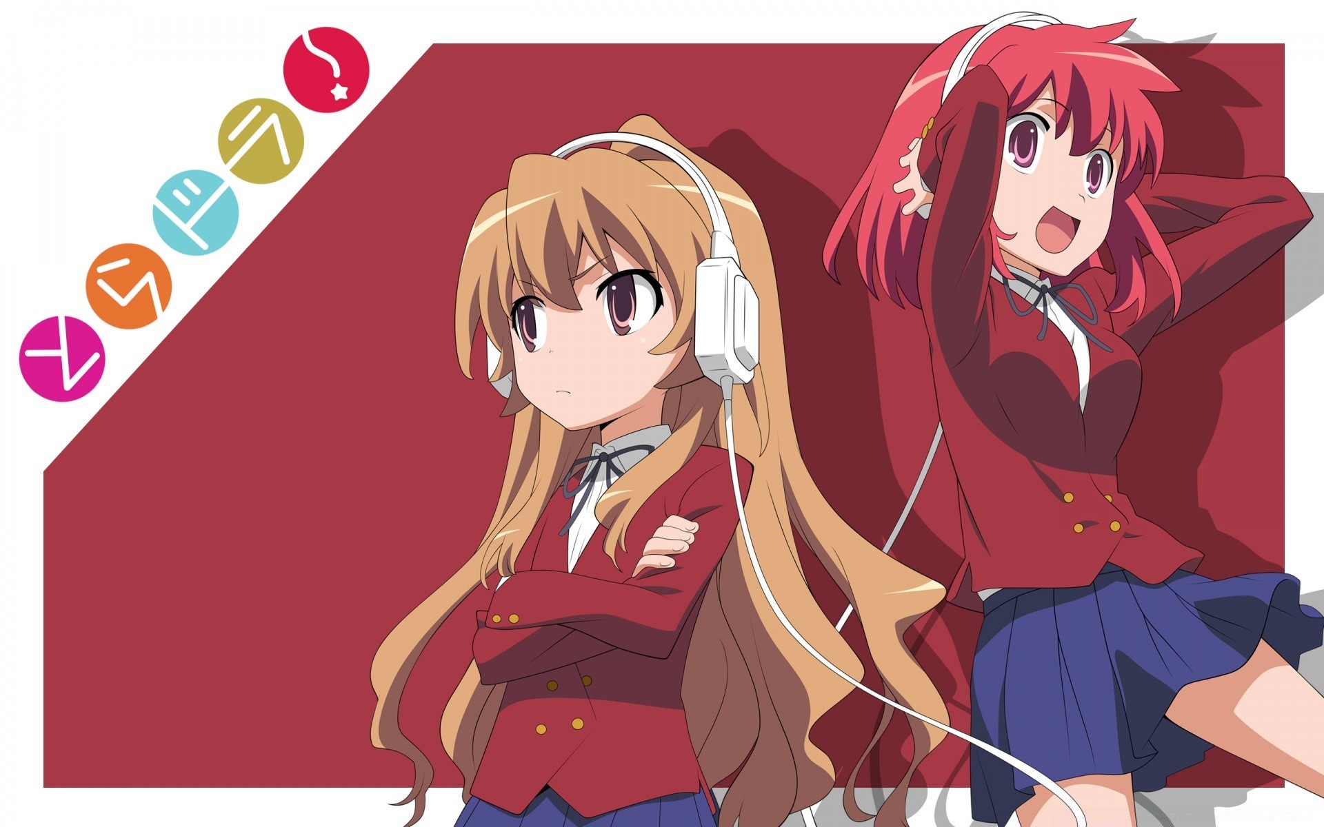 Anime-mädchen mit kopfhörern auf rotem hintergrundAnime-Mädchen mit Kopfhörern auf rotem Hintergrund