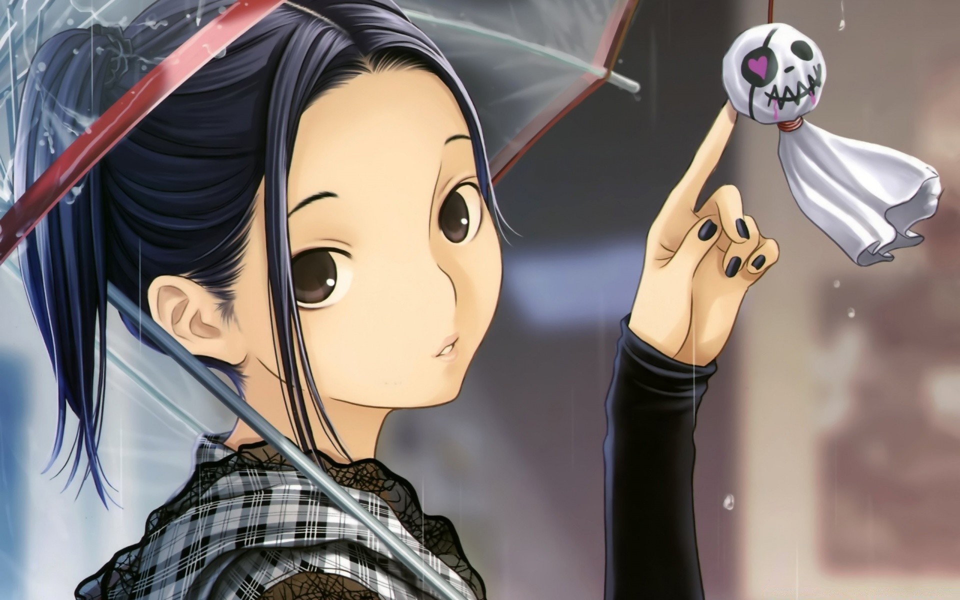 Anime Mädchen mit Regenschirm und Kopftuch