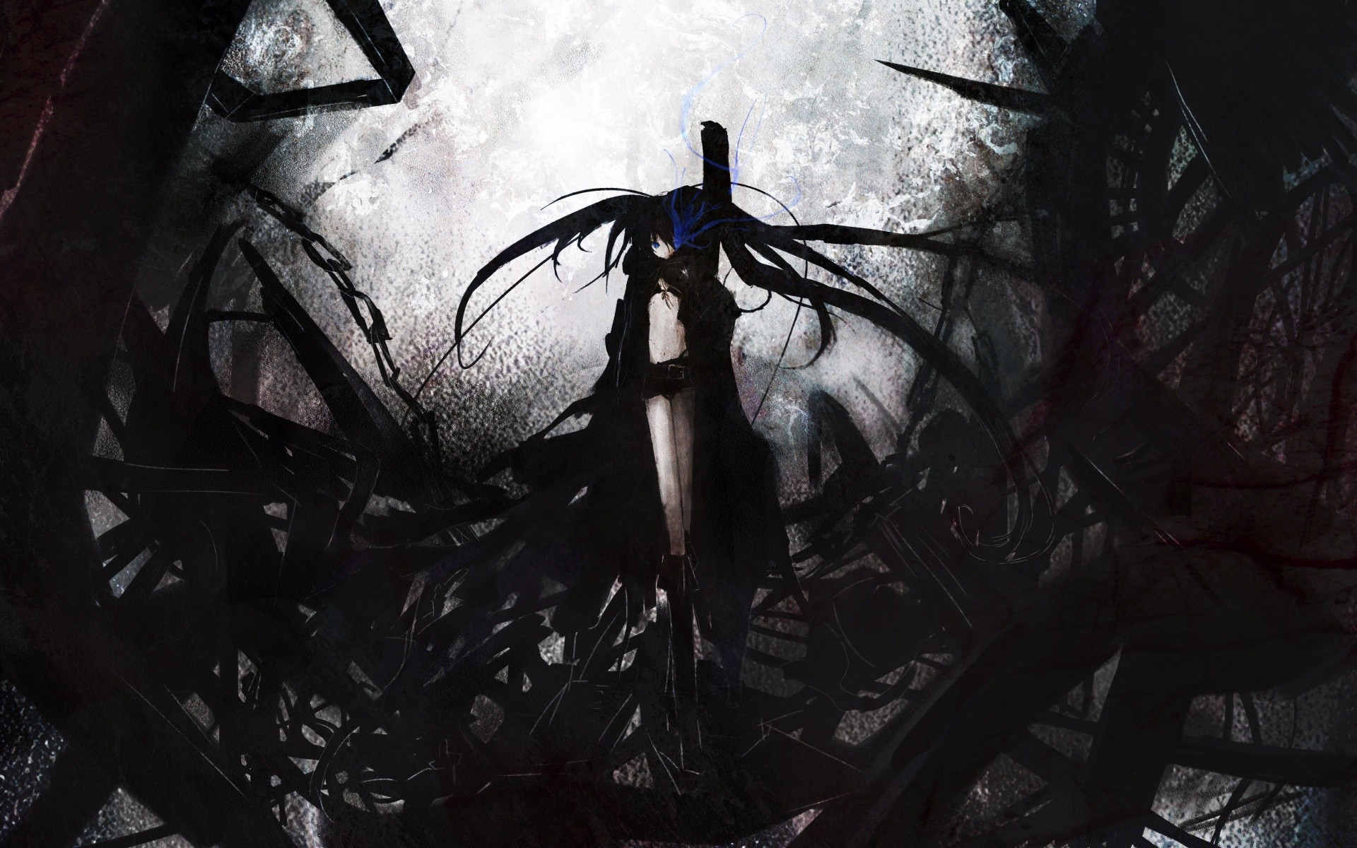Anime Heldin, Mädchen in einem schwarz-grauen Kleid mit einem Schwert