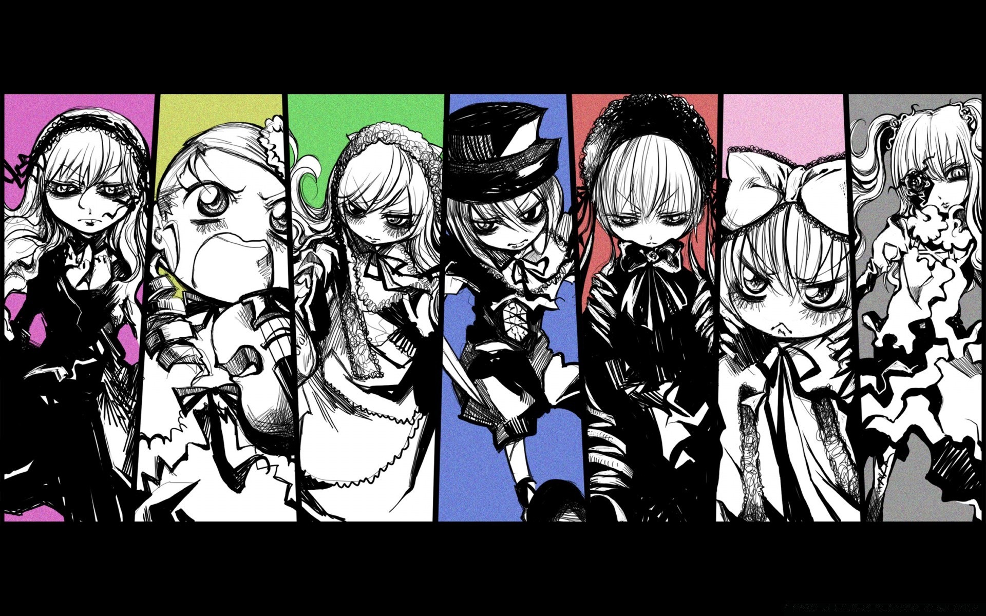 Schwarz-Weiß-Anime auf farbigen Hintergründen