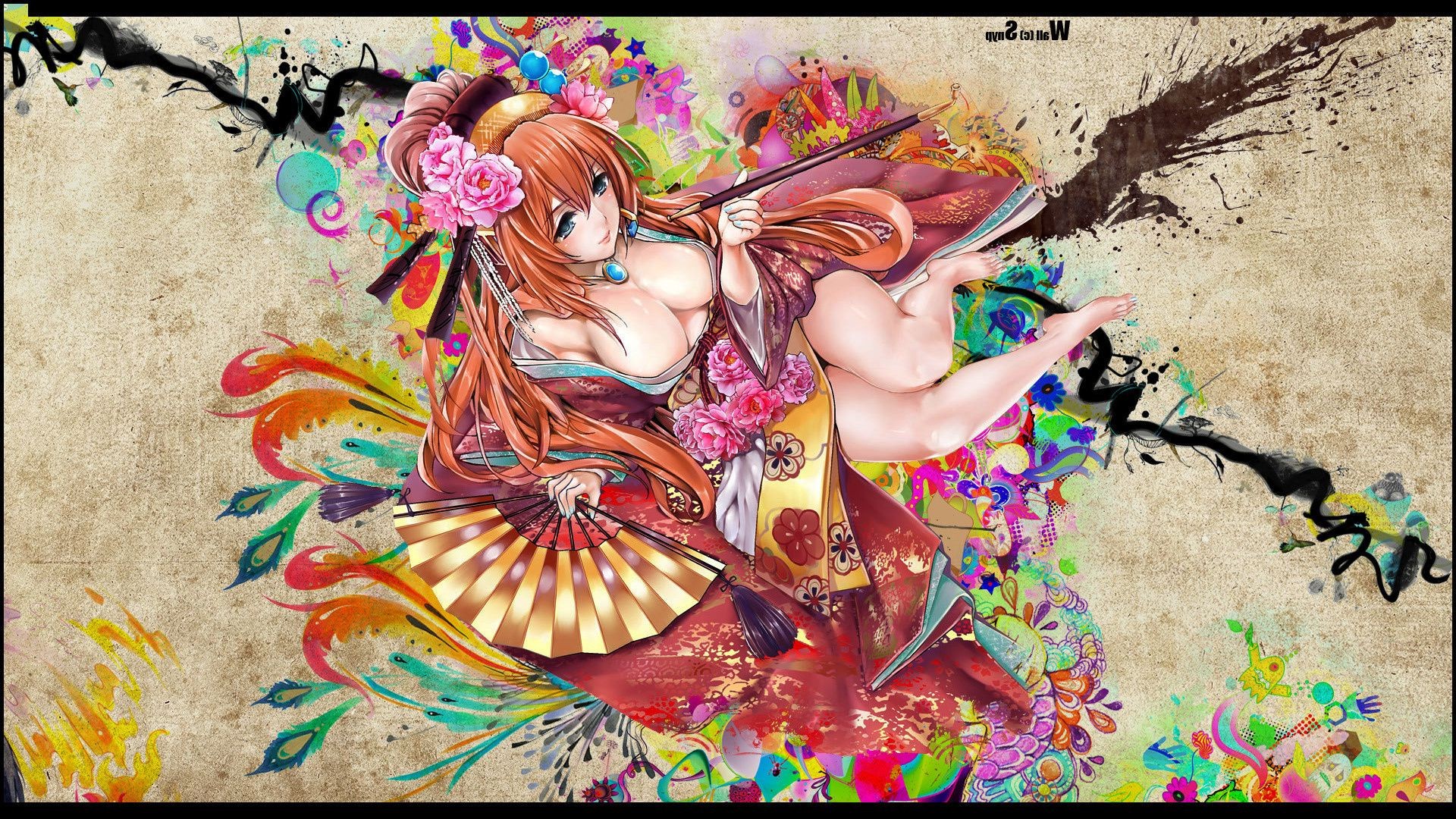 Anime-Mädchen mit hellen roten Haaren